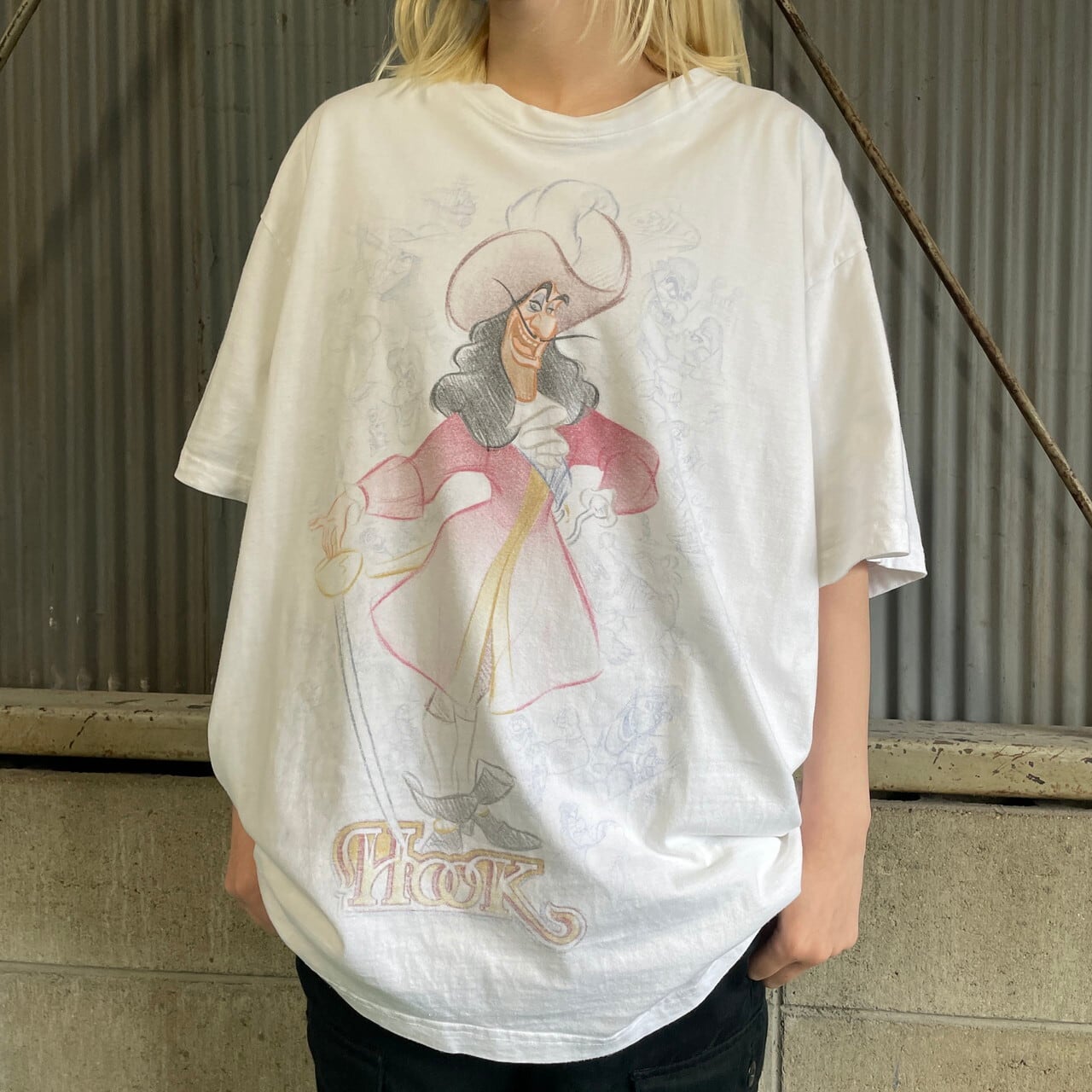 ビッグサイズ DISNEY STUDIO COLLECTION ディズニー HOOK フック船長 キャラクタープリントTシャツ メンズ2XL 古着 ムービー 映画 アニメ ピーターパン ホワイト 白 大きいサイズ 【Tシャツ】【AN20】