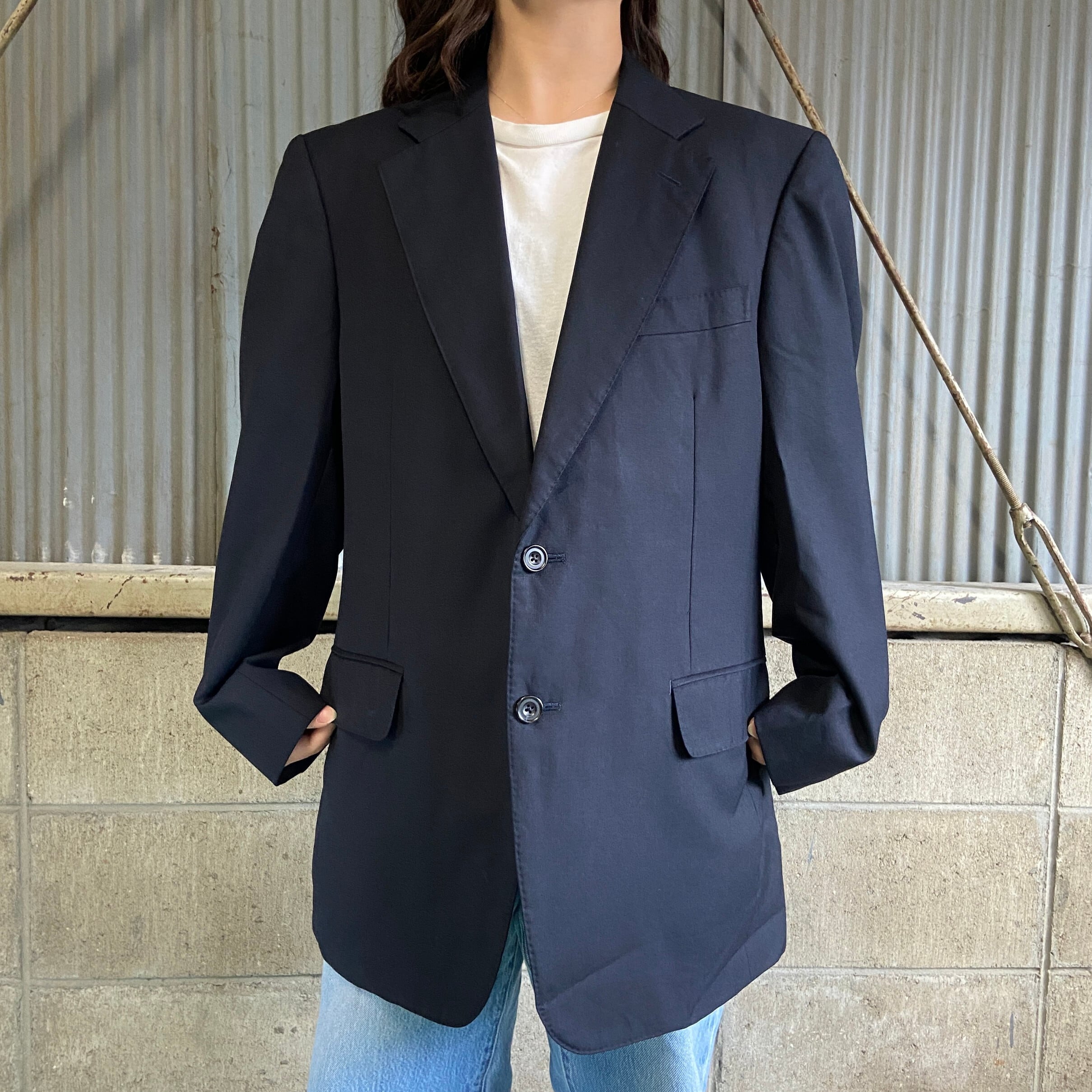 ■80年代~90年代 Burberry's バーバリー テーラードジャケット メンズL相当 古着 80s 90s ヴィンテージ ビンテージ 黒 ブラック 肩パッド入り スーツ 【ブルゾン・ジャケット】