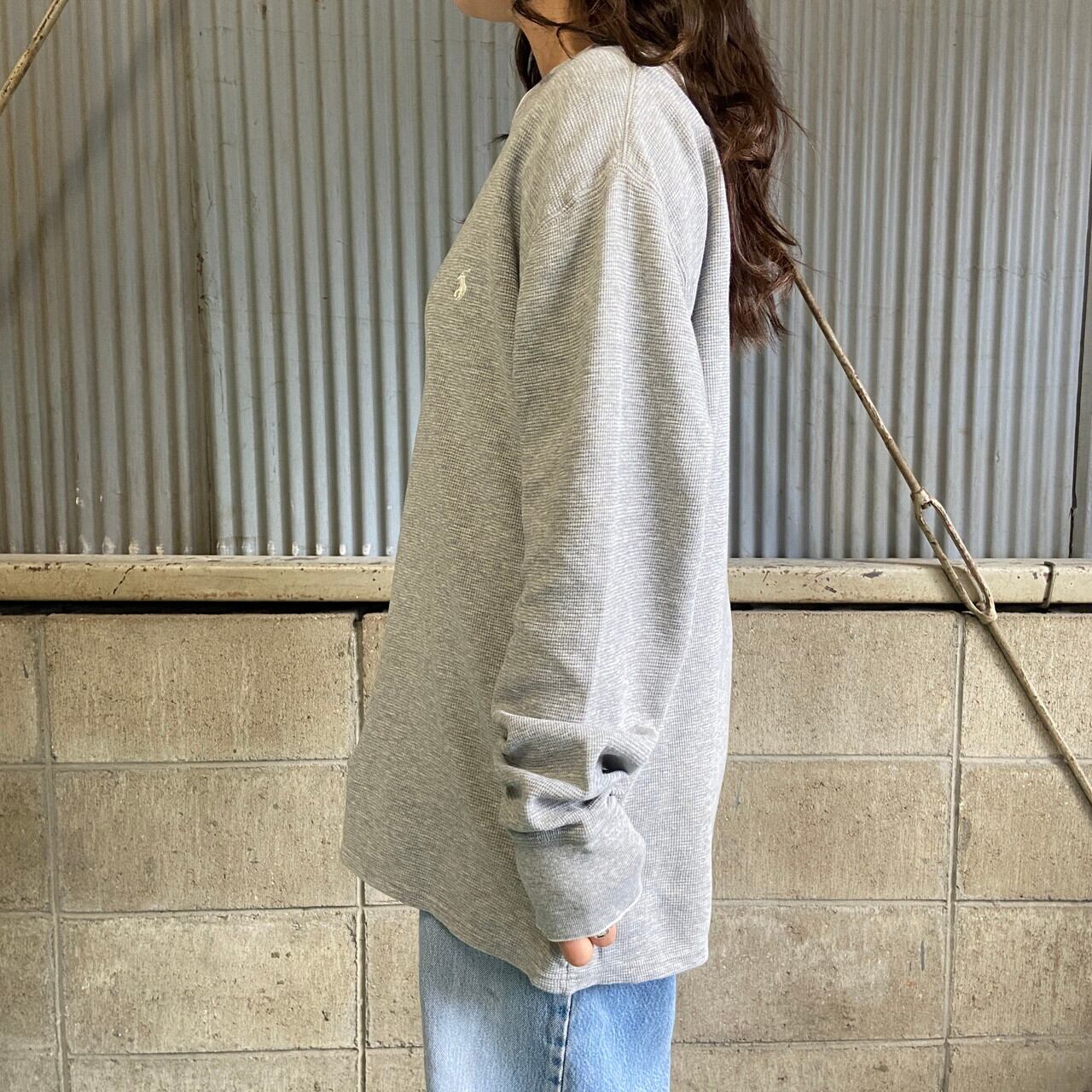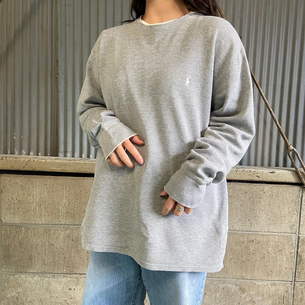 ■Polo Ralph Lauren ポロラルフローレン ワンポイントロゴ 刺繍 サーマル 長袖Tシャツ メンズXL 古着 ワッフル ライトグレー 灰色 ロンT 【ロングTシャツ】【3anniv】