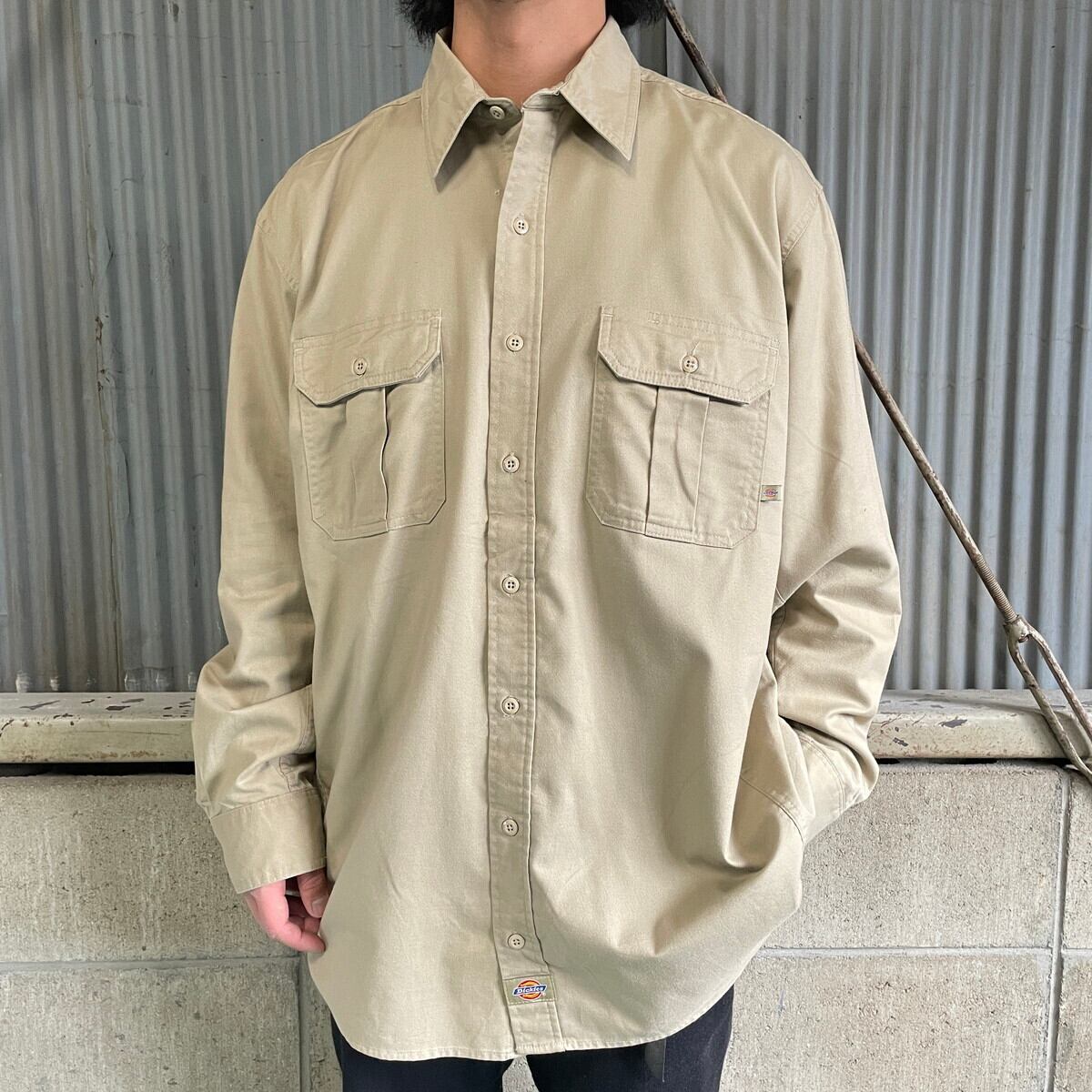 ■Dickies ディッキーズ 長袖 ワークシャツ メンズXL 古着 ベージュ【長袖シャツ】【3anniv】【長袖シャツ】