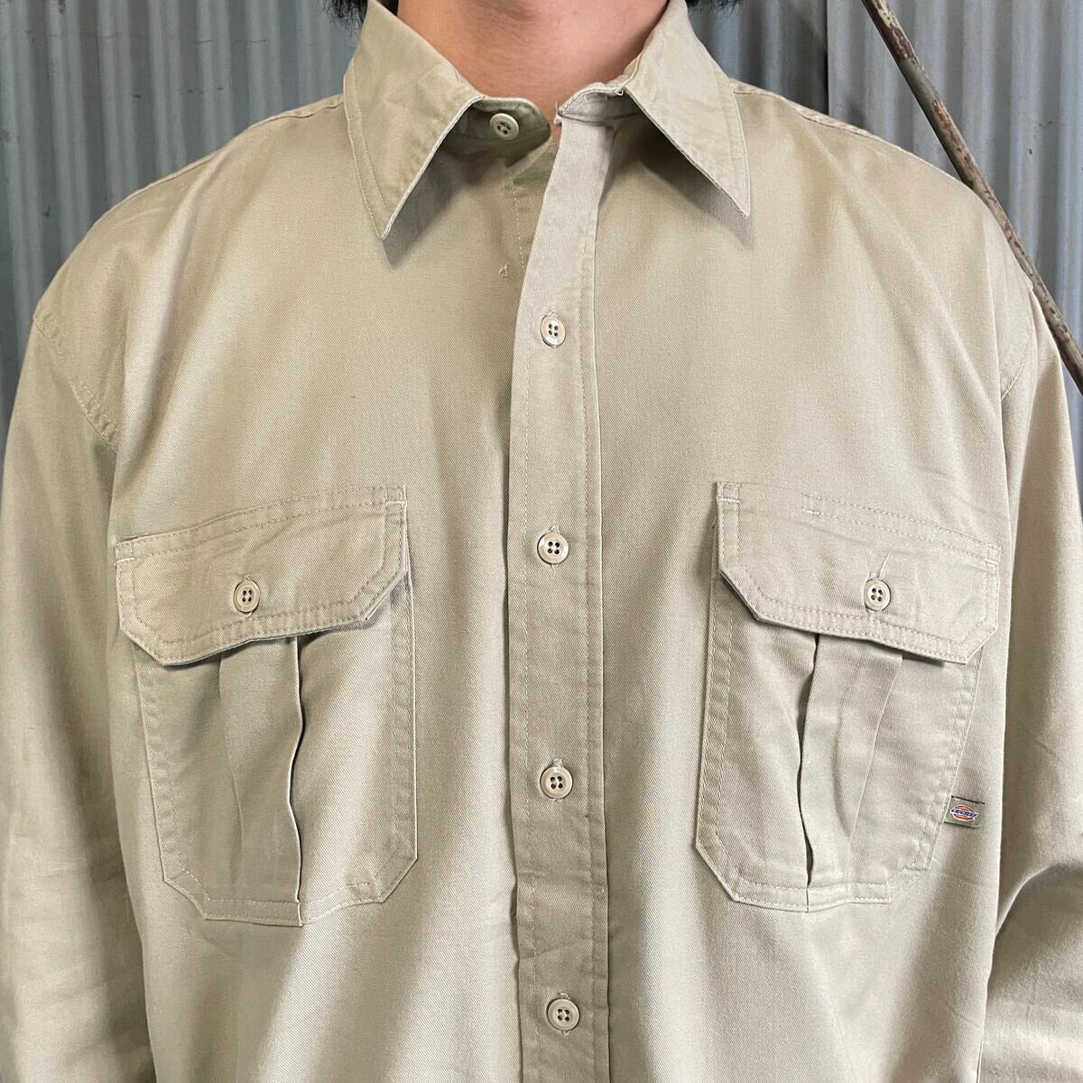 Dickies ディッキーズ 長袖 ワークシャツ メンズXL 古着 ベージュ【長袖シャツ】【4S-50】
