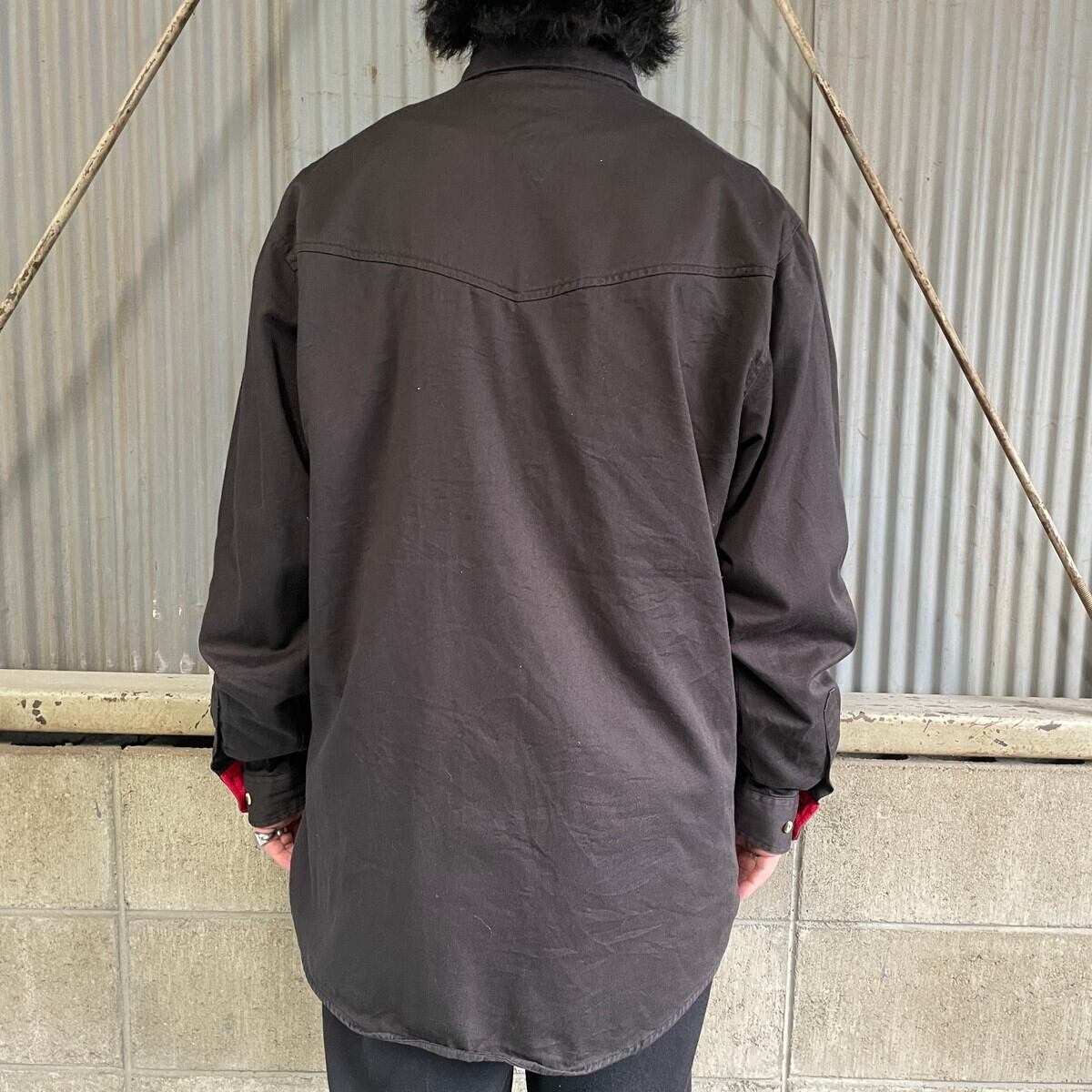 WESTERN MAGE 星条旗 長袖 ボタンダウンシャツ メンズL 古着 ブラック レッド【長袖シャツ】【4S-50】
