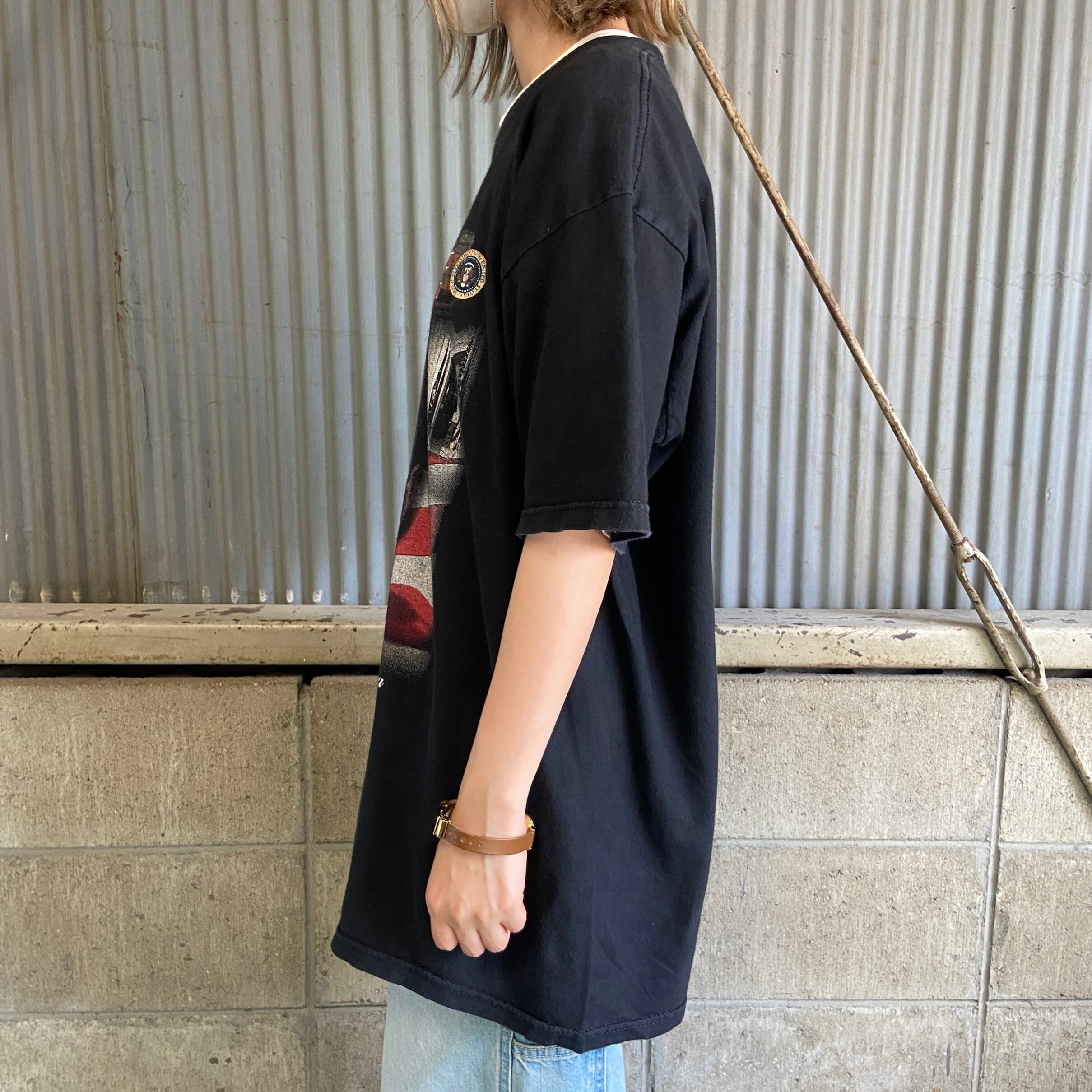 00年代 ”CHIEF” Obama バラク・オバマ PRESIDENT アメリカ 大統領 プリントTシャツ メンズL 古着 偉人 人物 ブラック 黒色 00s ヴィンテージ ビンテージ【Tシャツ】【SA2501-50】