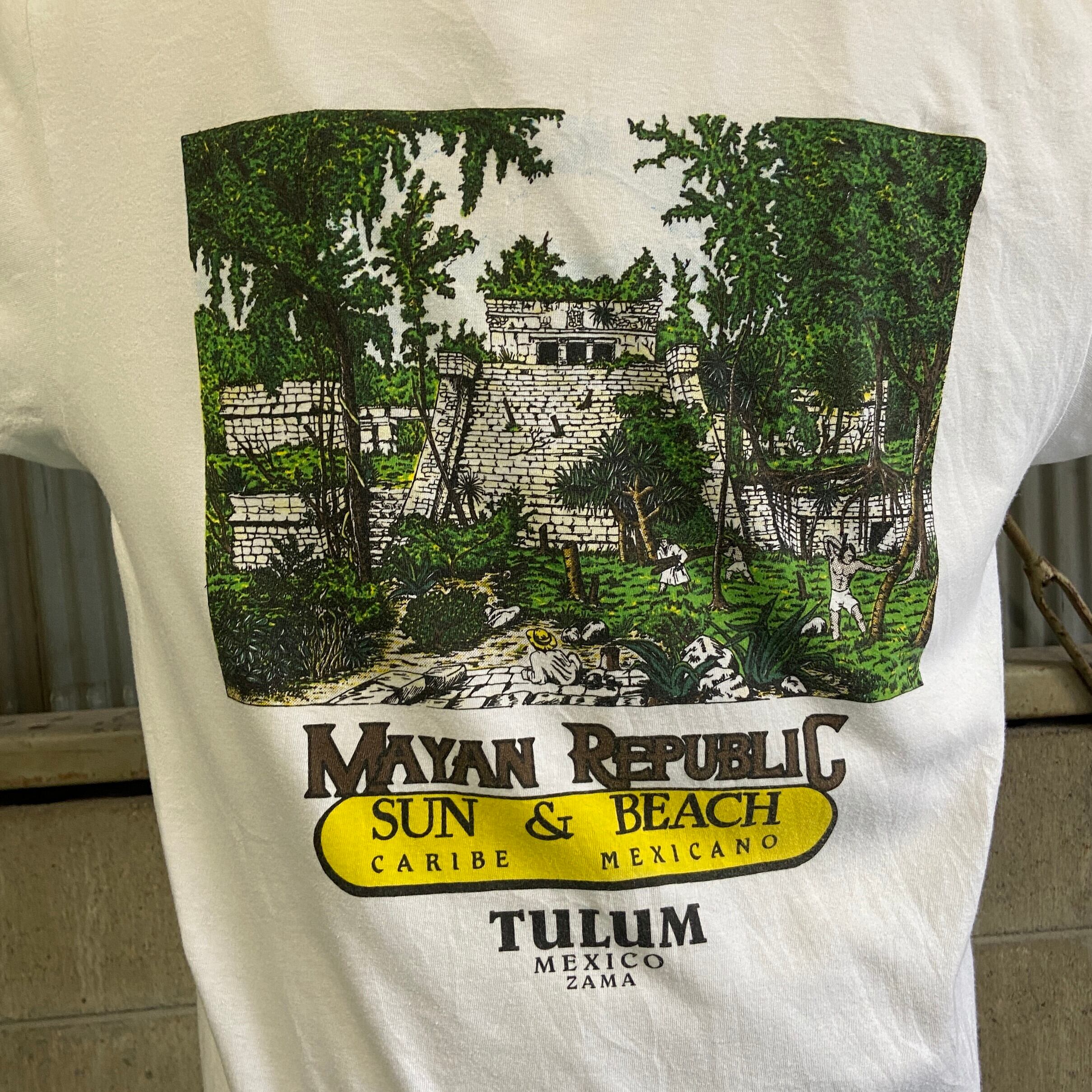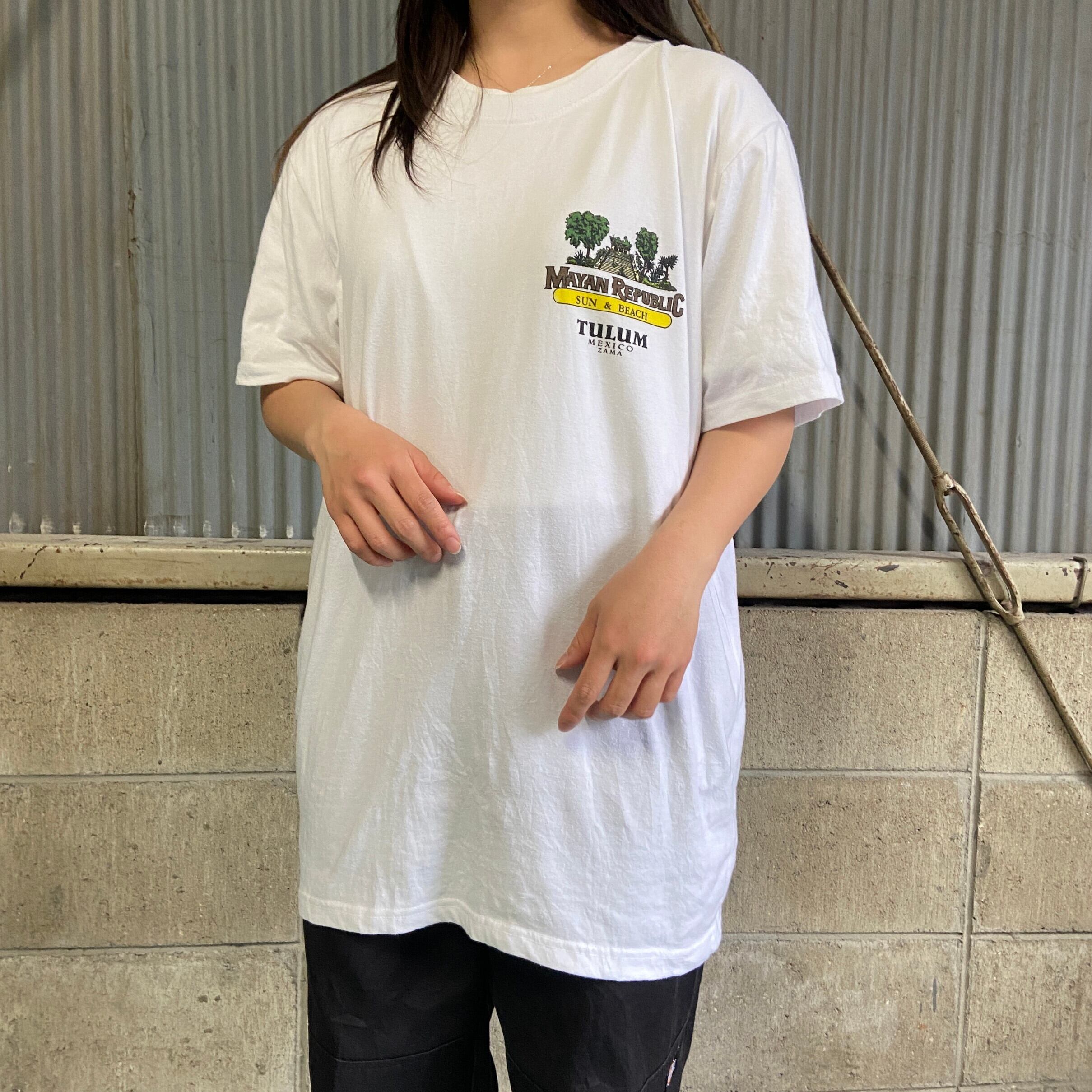 ■ ”MAYAN REPUBLIC” スーベニア 胸ロゴ バックプリントTシャツ メンズL 古着 ホワイト 白 【Tシャツ】