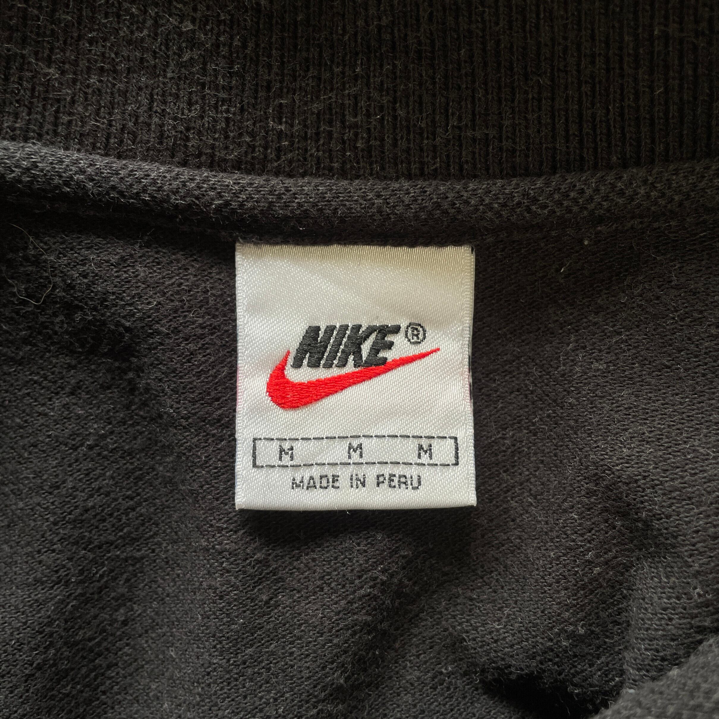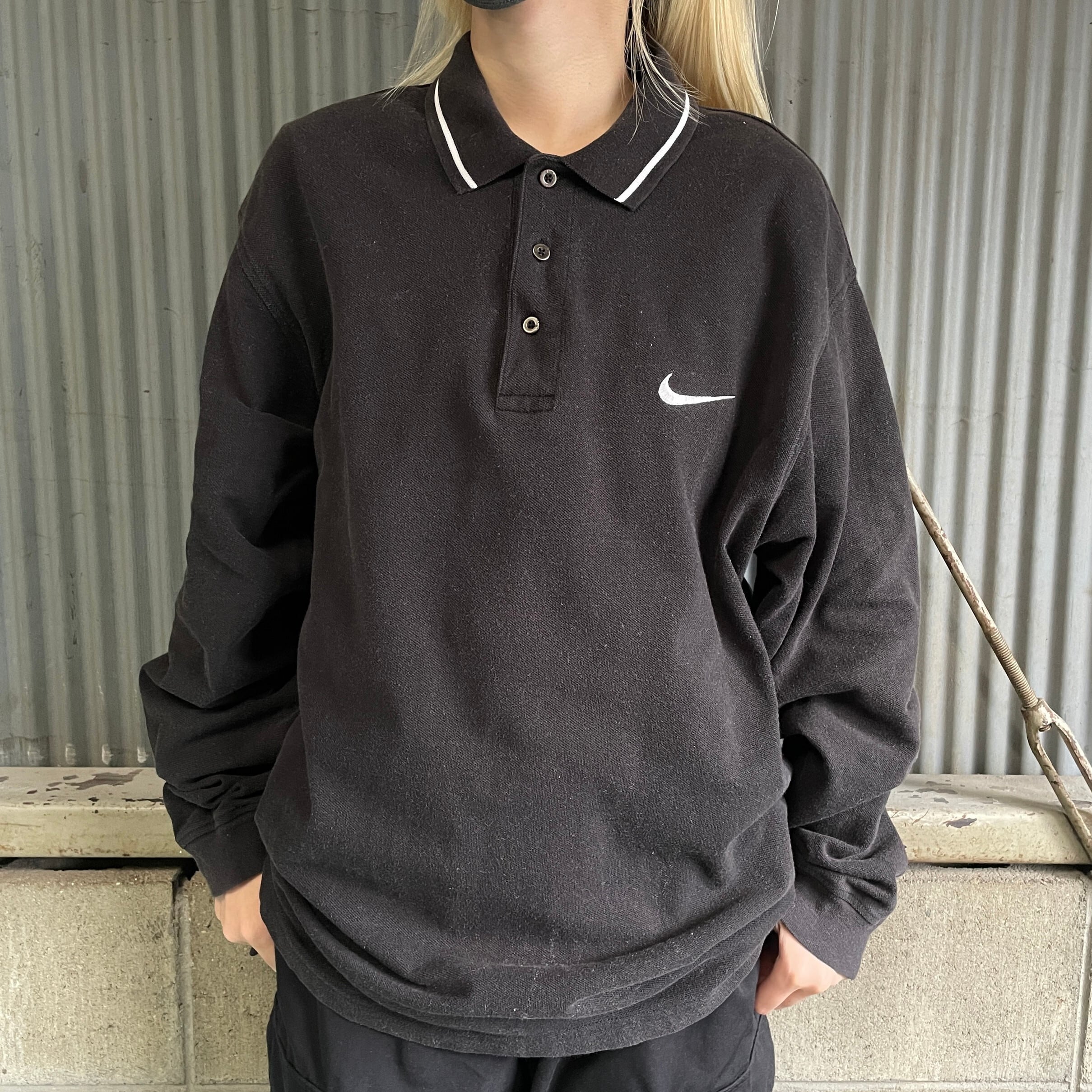 90年代 NIKE ナイキ ワンポイント スウォッシュロゴ刺繍 長袖ポロシャツ メンズM 古着 90s ヴィンテージ ビンテージ ブラック 黒 ロンポロ 鹿の子【ポロシャツ】【3anniv】