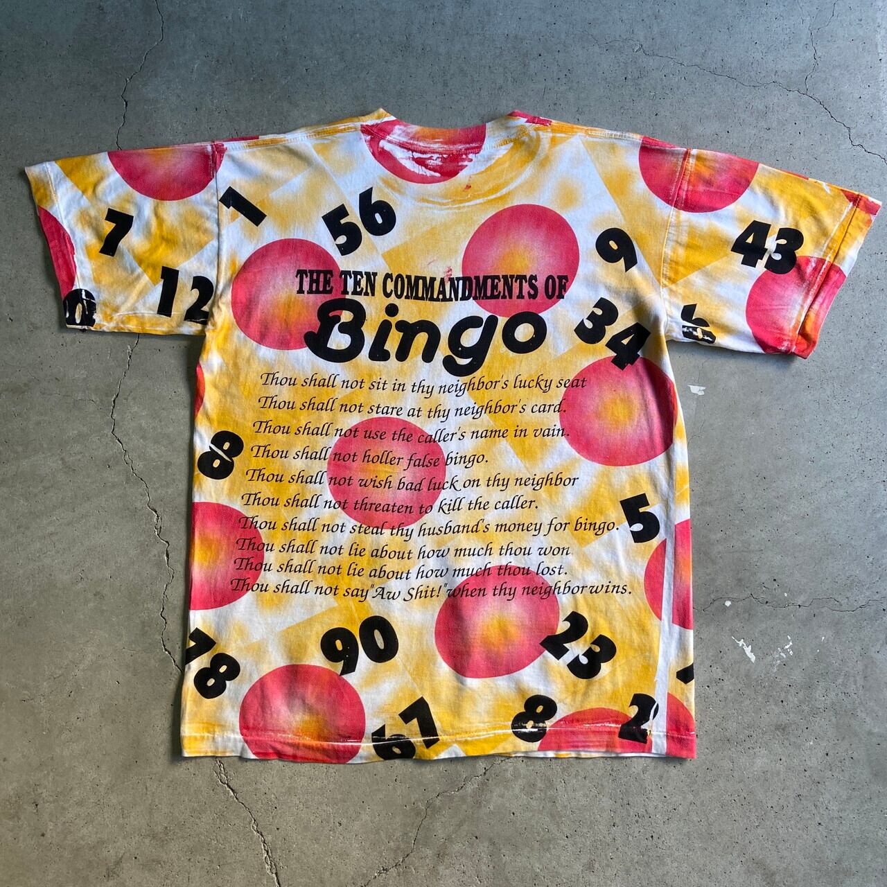 ■90年代 THE TEN COMMANDMENTS OF BINGO ビンゴ 総柄 オールオーバープリントTシャツ メンズXL相当 古着 90s ビンテージ ヴィンテージ オレンジ ホワイト レッド 白 赤【Tシャツ】