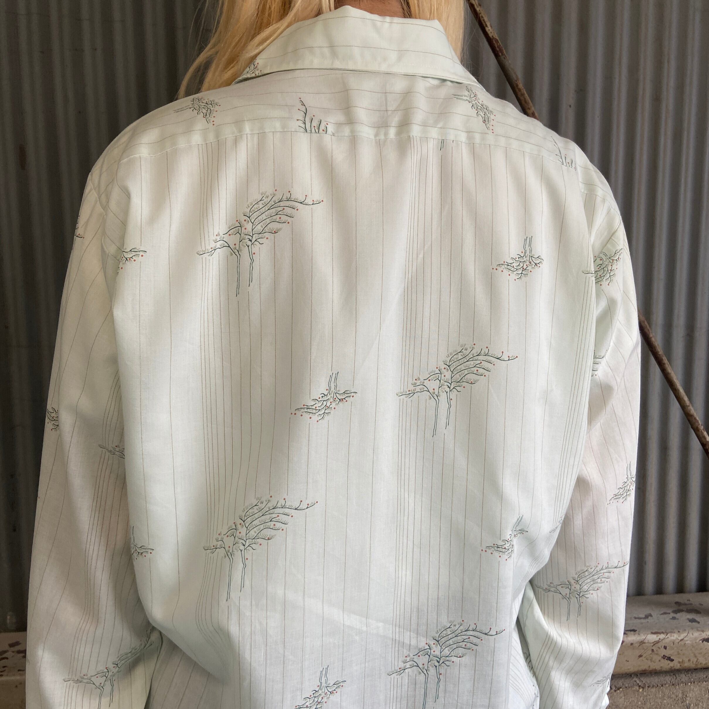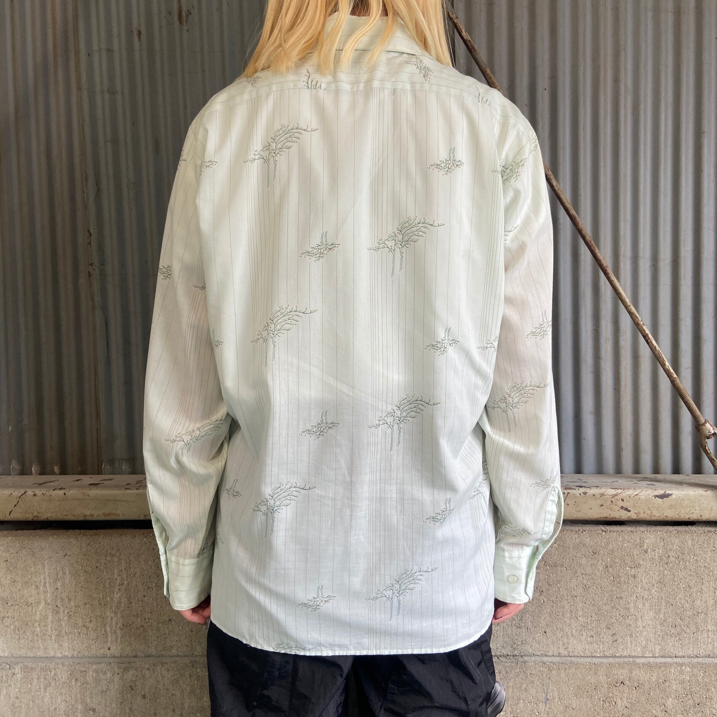 60年代〜70年代 Newport 長袖 花 総柄シャツ メンズM相当 15REG 古着 60s 70s ヴィンテージ ビンテージ ミントグリーン 緑色【長袖シャツ】【4S-50】