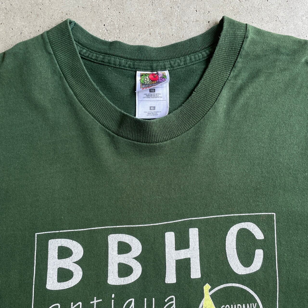 ■90年代 USA製 BIG BANANA HOLDING COMPANY 企業ロゴ アドバタイジング Tシャツ メンズXL 古着 シングルステッチ 両面プリント バックプリント 90sヴィンテージ ビンテージ グリーン 緑色【Tシャツ】