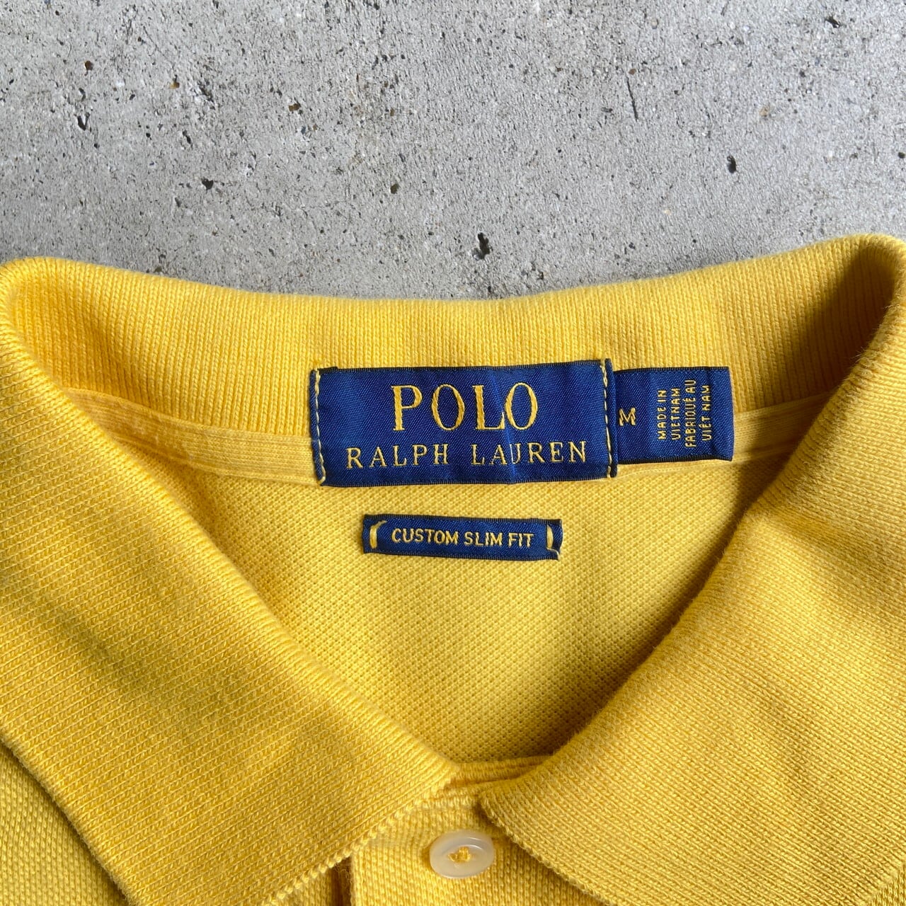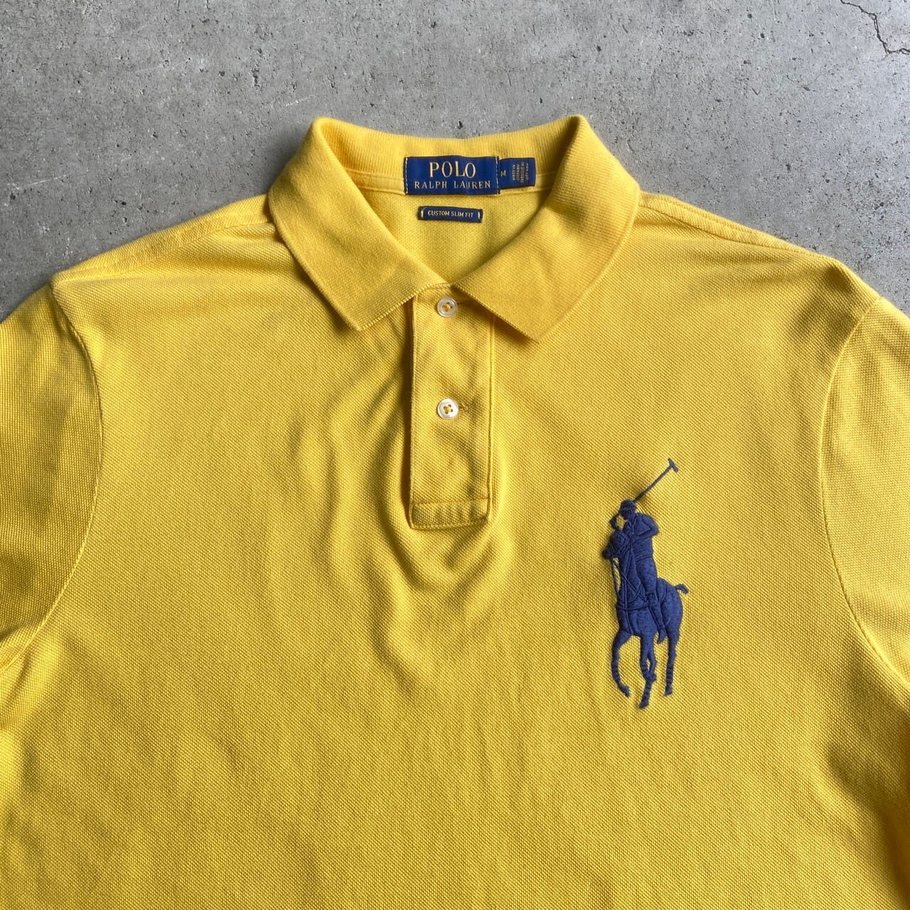 ■Polo Ralph Lauren ポロラルフローレン ビッグポニー 鹿の子 ポロシャツ メンズS-M 古着 ナンバリング イエロー 黄色【ポロシャツ】
