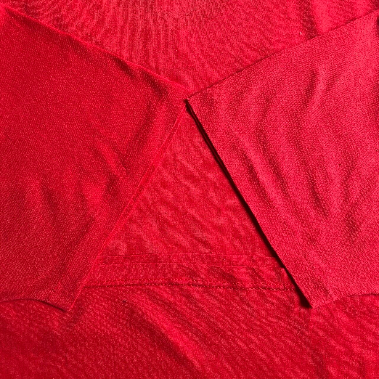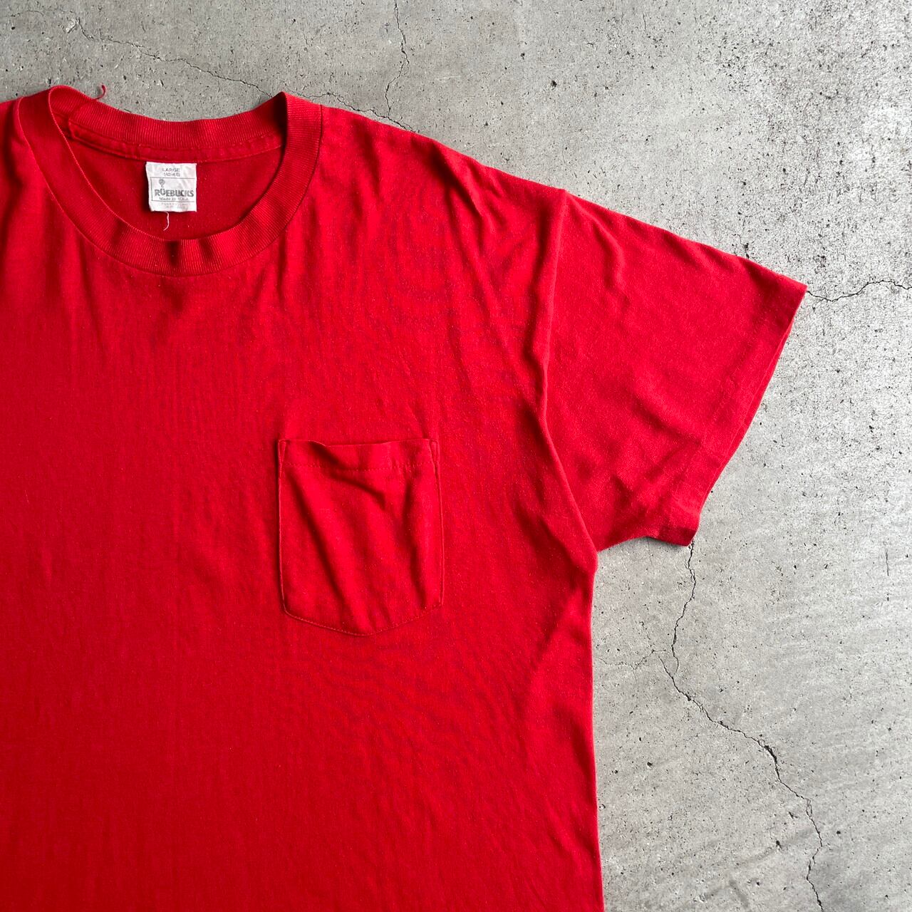 80年代 USA製 ROEBUCKS ローバックス 袖シングルステッチ 無地 耳付き ポケットTシャツ ブランクTシャツ メンズL 古着 SEARS シアーズ 80s ヴィンテージ ビンテージ レッド 赤色【Tシャツ】【SA2501-50】