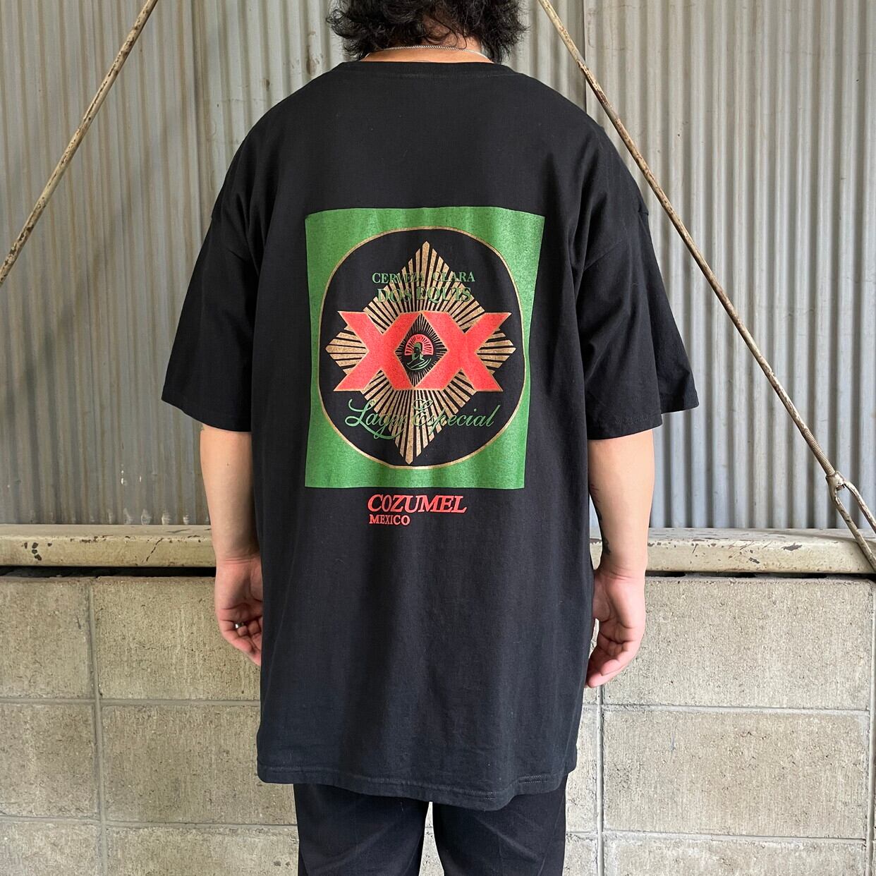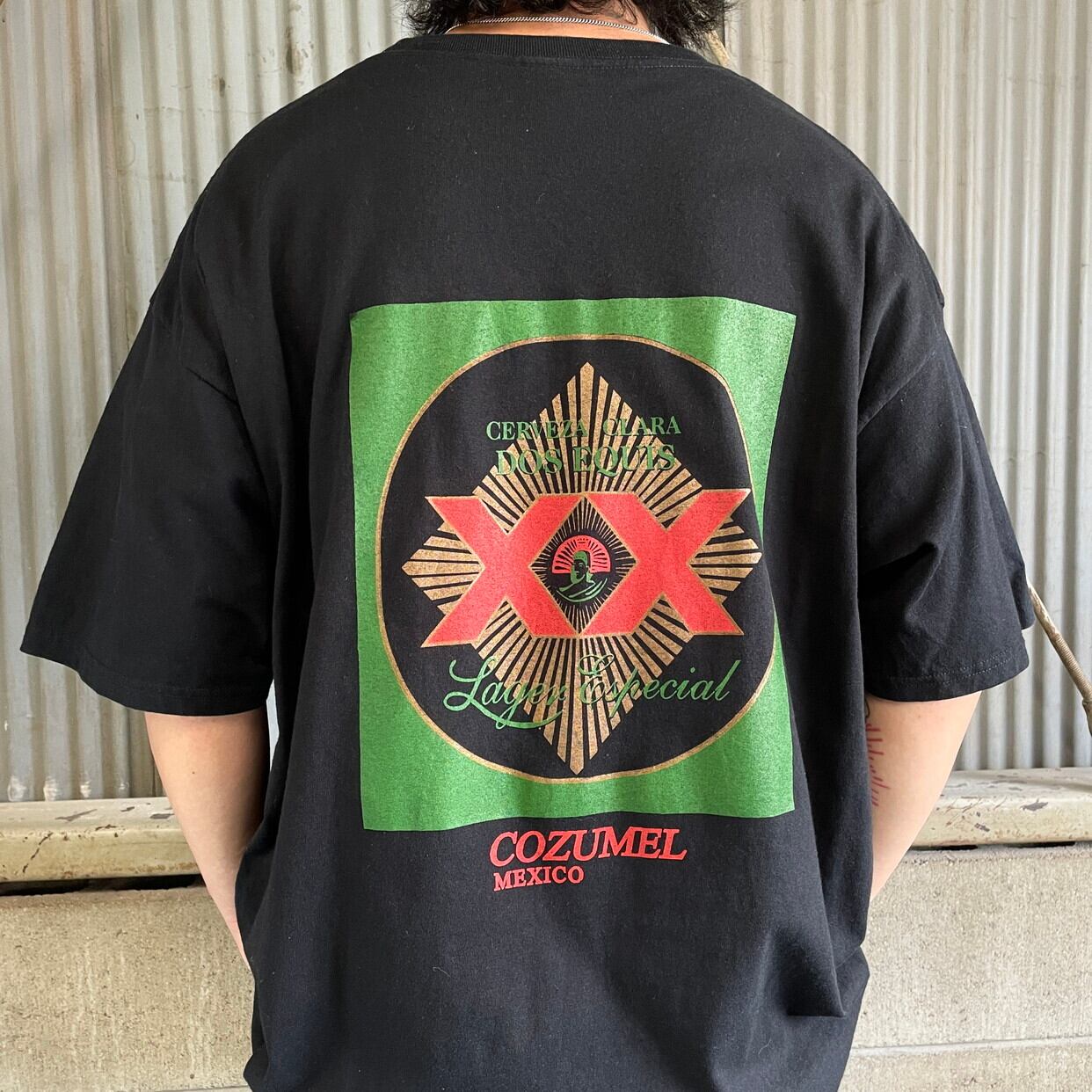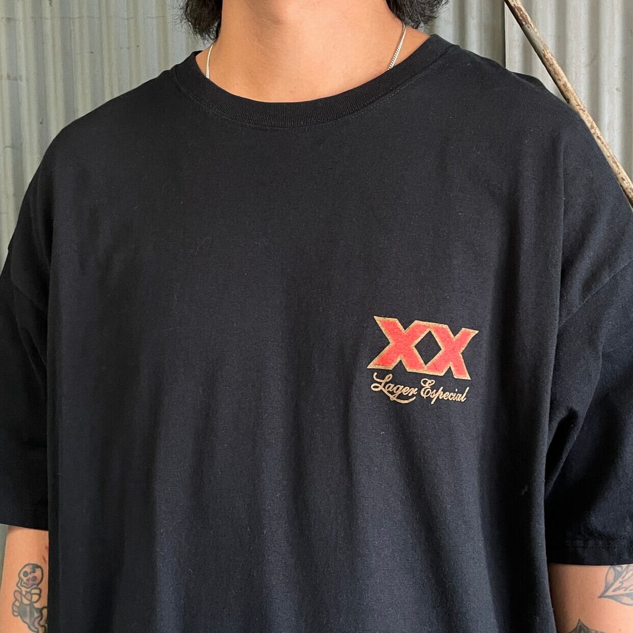Cerveza Clara Dos Equis XX メキシコビール 企業ロゴ アドバタイジング バックプリントTシャツ メンズ2XL 古着 ビッグサイズ 大きいサイズ ブラック 黒 酒【Tシャツ】