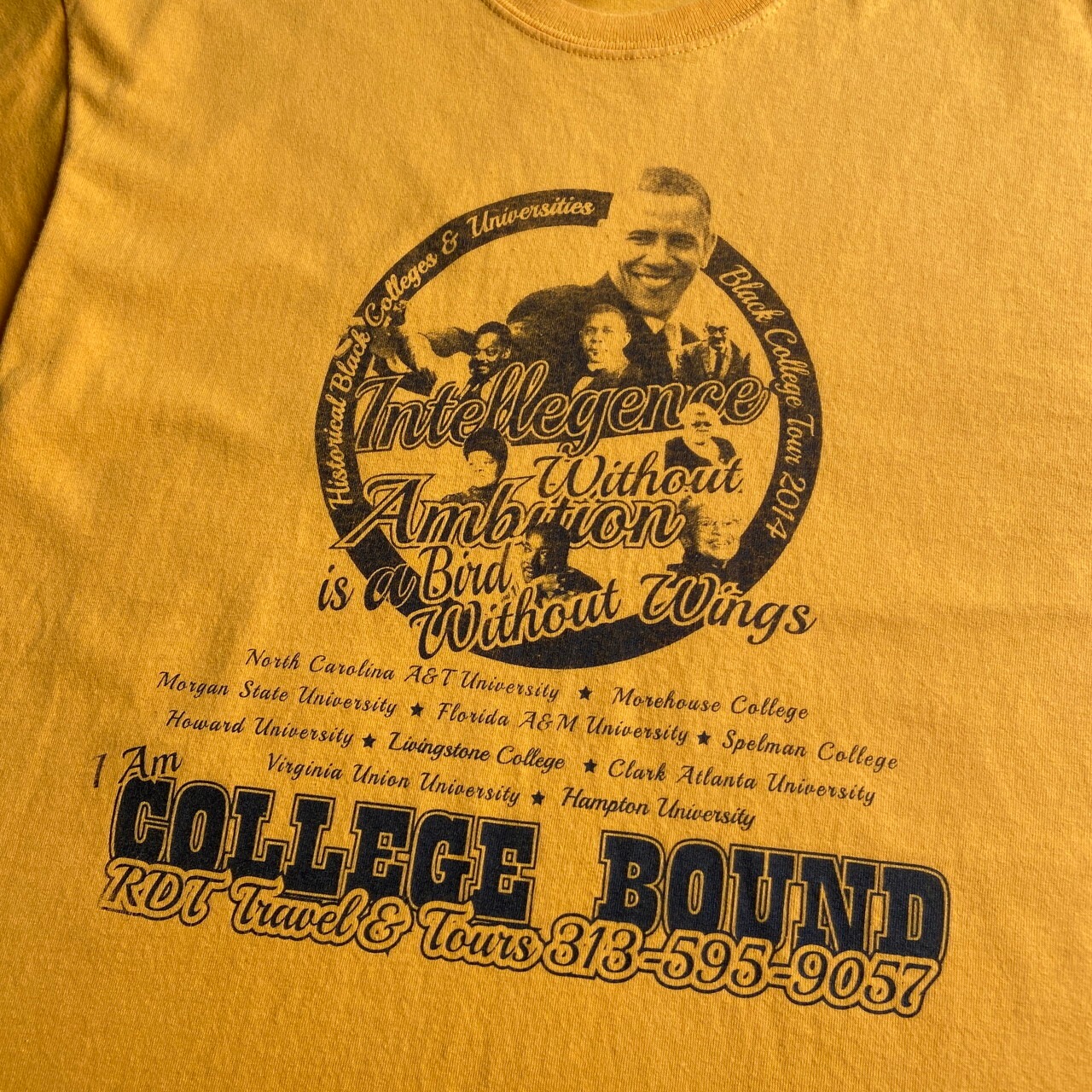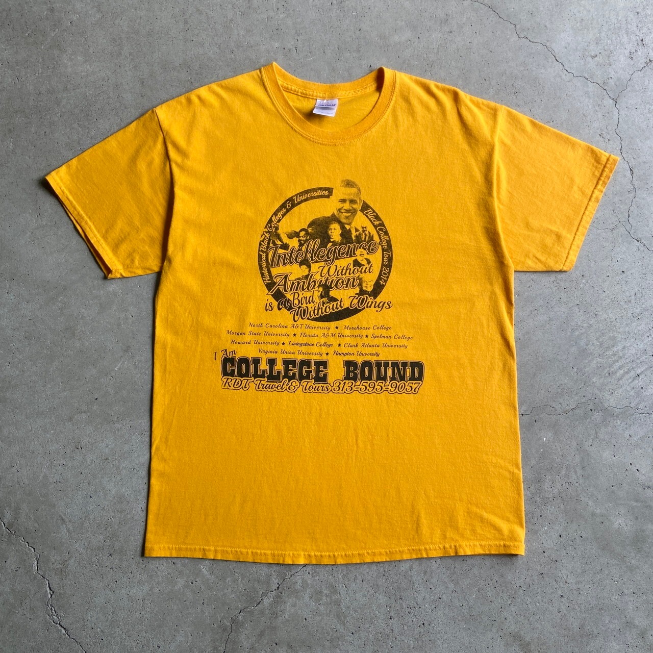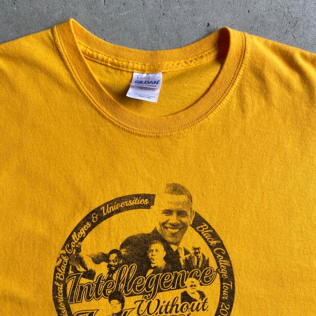 ■BLACK COLLEGE TOUR 黒人 偉人 フォトプリント Tシャツ メンズL 古着 人物 イエロー 黄色【Tシャツ】