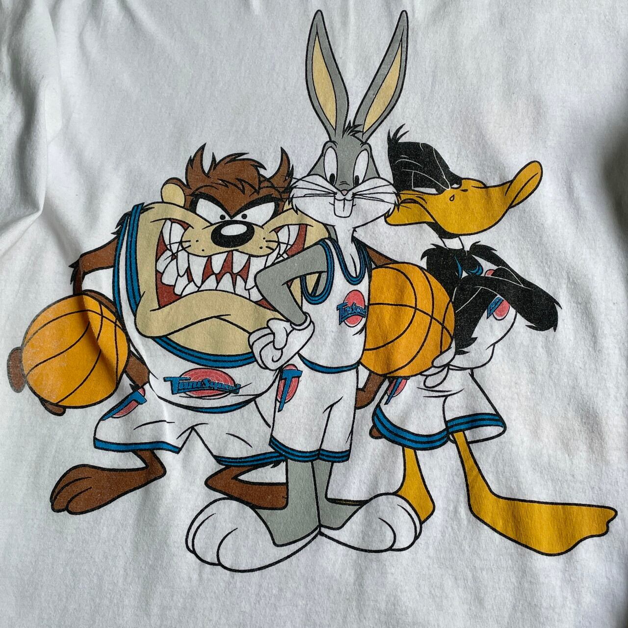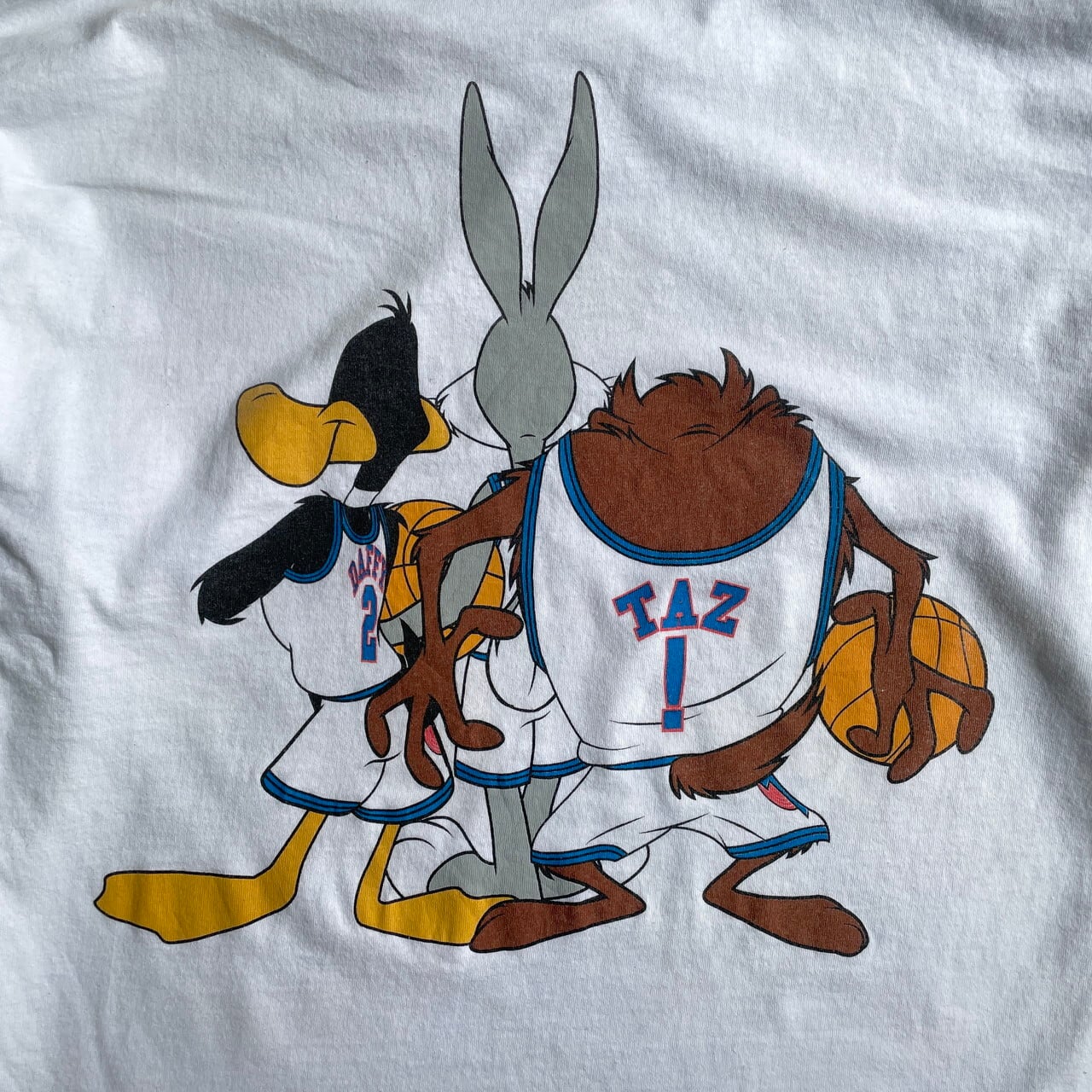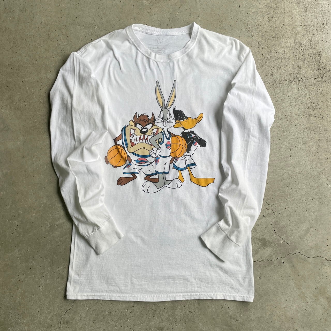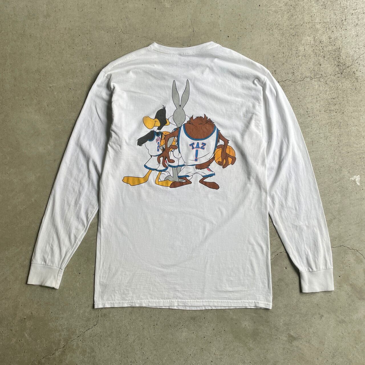 SPACE JAM スペースジャム TUNE SQUAD ルーニー・テューンズ キャラクター ムービー 両面プリント ロングTシャツ メンズM 古着 WARNER BROS. ワーナーブラザーズ 映画 ホワイト 白 レディース 長袖Tシャツ バックプリント【ロングTシャツ】【SS2308-2】【4S-50】