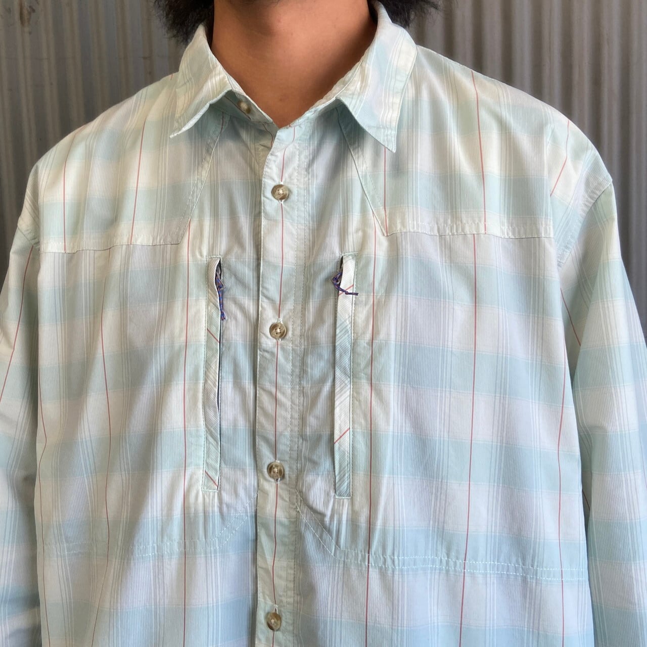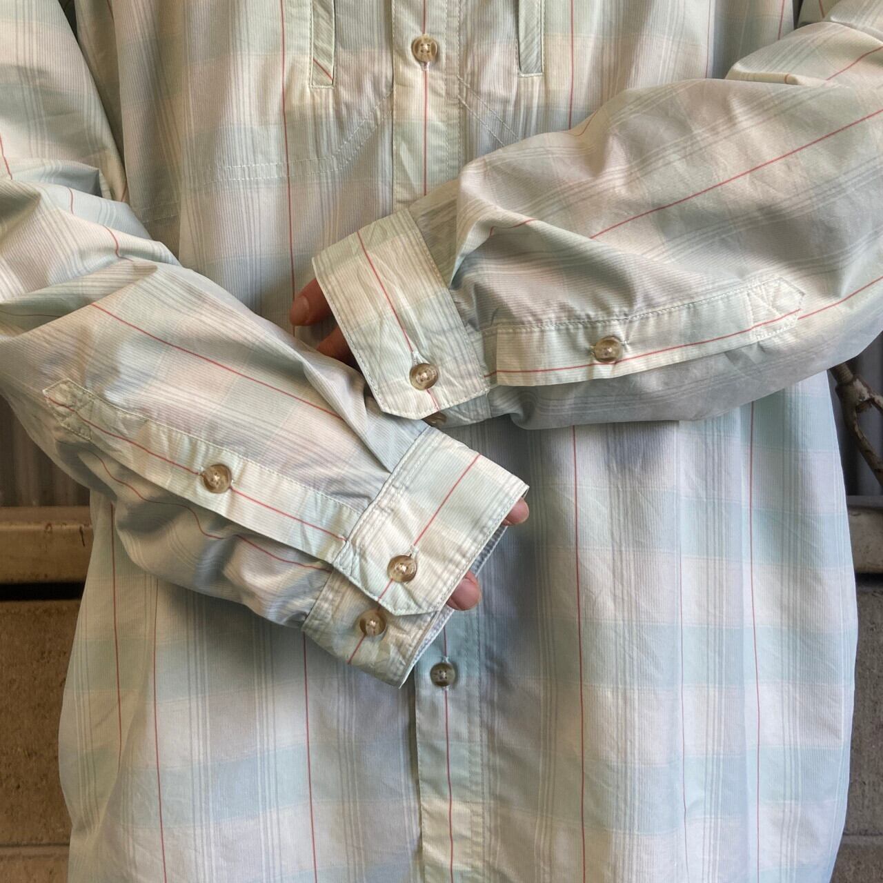 ビッグサイズ patagonia パタゴニア サンストレッチ 長袖シャツ メンズ2XL 古着 52197SP19 アウトドア ライトグリーン 緑【長袖シャツ】