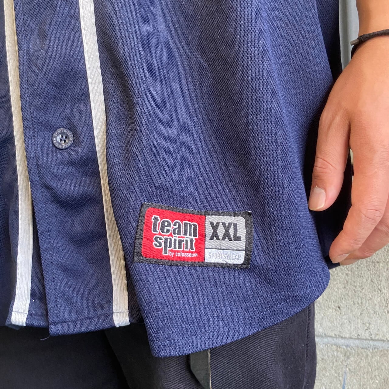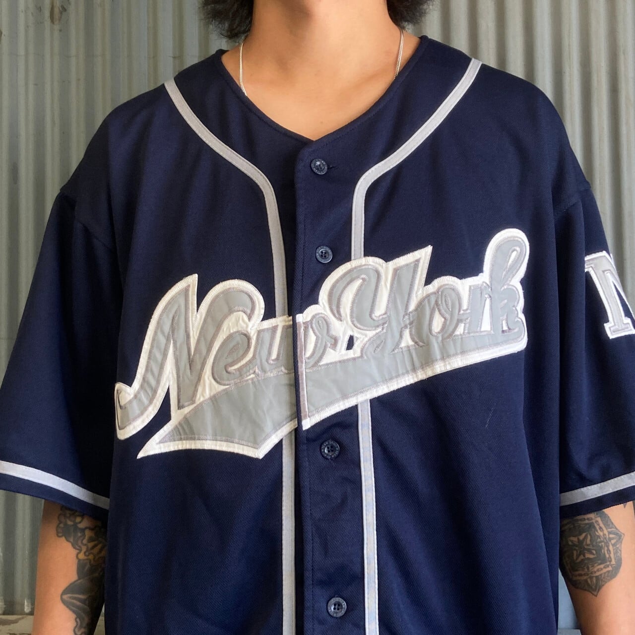 TEAM SPIRIT ニューヨーク ベースボールシャツ メンズXL 古着 ネイビー 紺 ユニフォーム【ゲームシャツ】【SS2308-3】