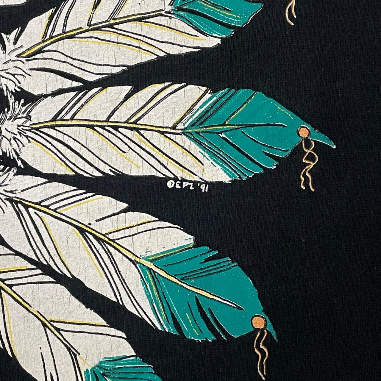 ■90年代 USA製 OREGON レイヤード ネイティブ柄 プリントTシャツ メンズL 古着 ブラック 黒 90s ヴィンテージ ビンテージ 裾シングルステッチ リンガー【Tシャツ】