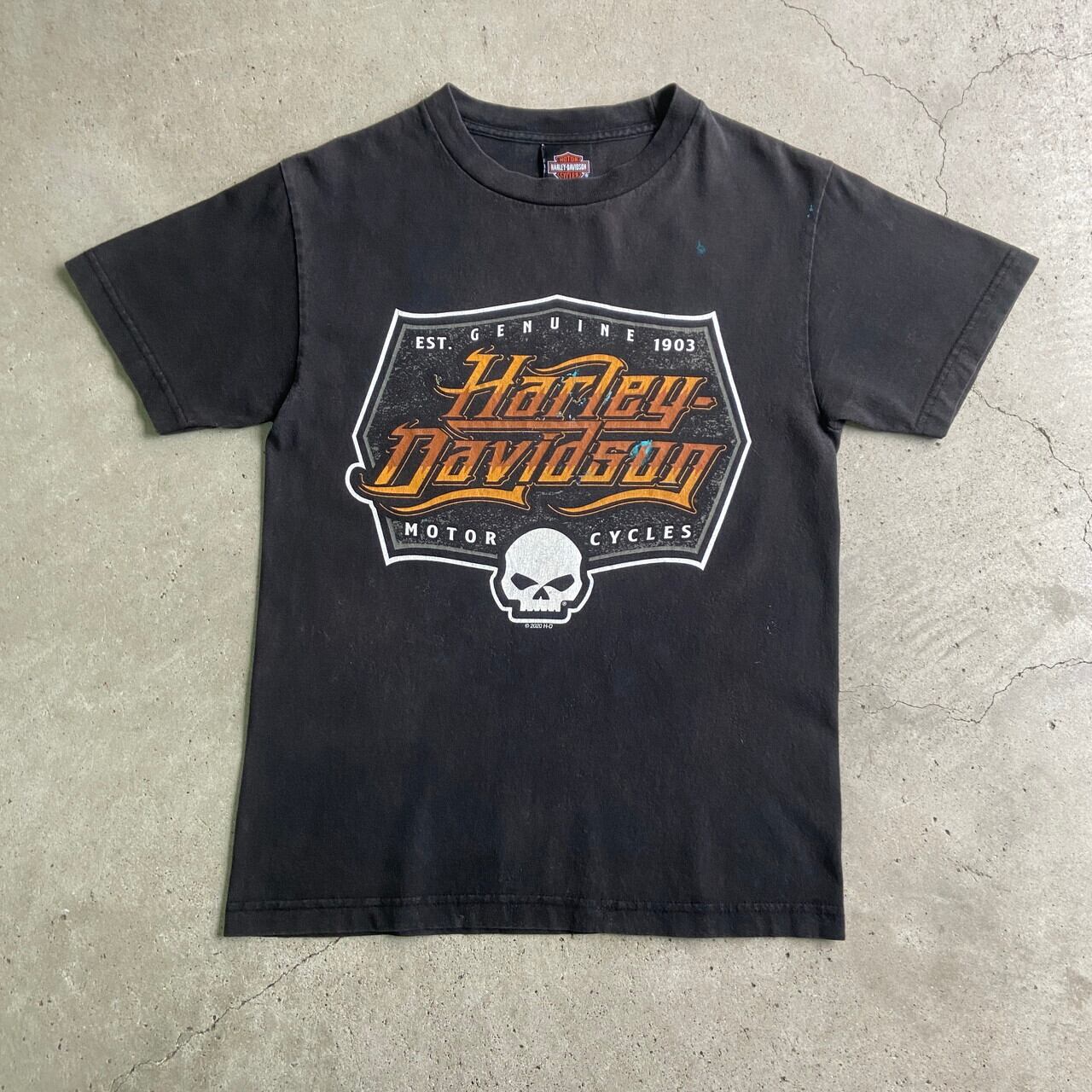 ■Harley-Davidson ハーレーダビッドソン 両面プリント Tシャツ メンズS相当 古着 モーターサイクル バイクTシャツ ロゴプリント バックプリント ブラック 黒 レディース 【Tシャツ】
