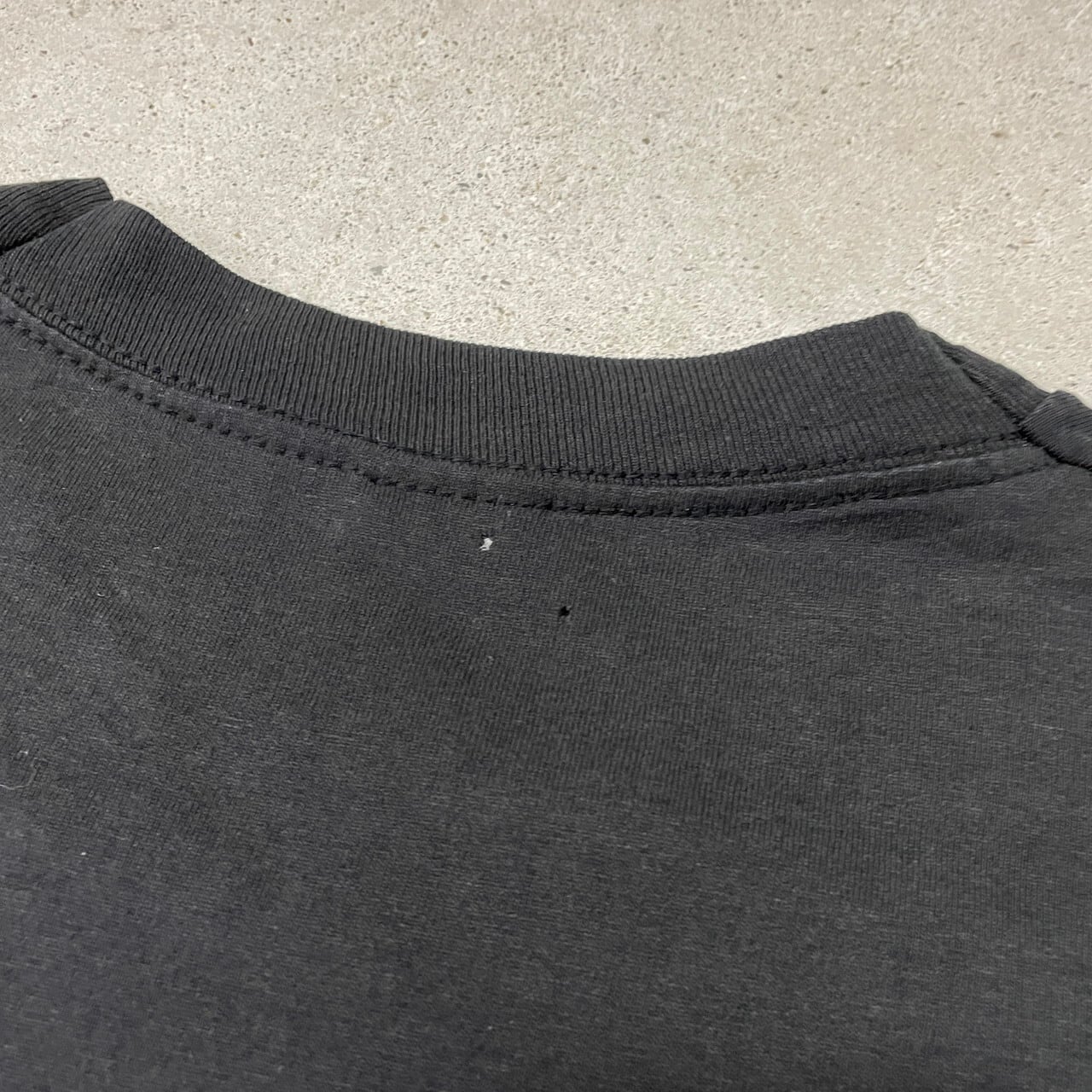 【状態】全体的にフェードした黒色になっております。また数か所小穴が御座います。またフロントプリント付近に汚れが御座います。画像にてご確認ください。