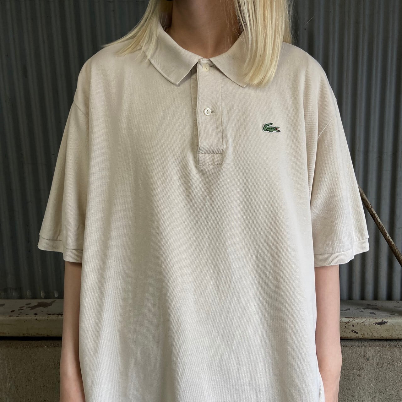■ビッグサイズ LACOSTE ラコステ 鹿の子 ポロシャツ メンズ2XL相当 古着 ワンポイントロゴ ベージュ 大きいサイズ【ポロシャツ】