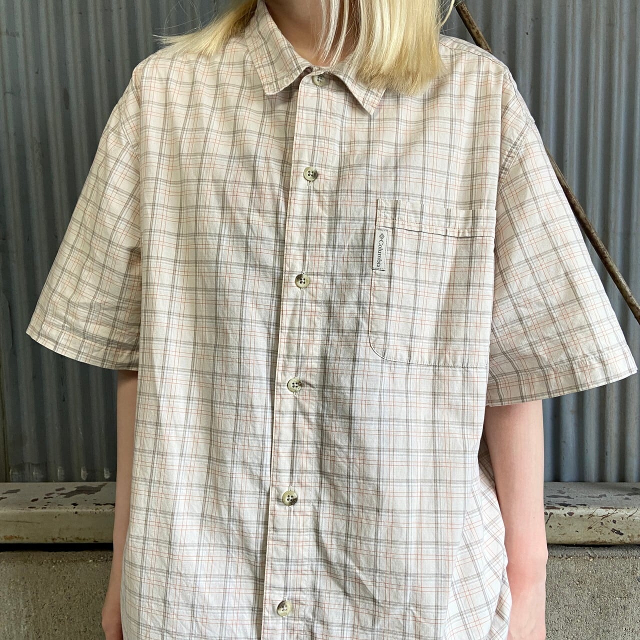 Columbia コロンビア 半袖 チェックシャツ メンズL 古着 ベージュ【半袖シャツ】
