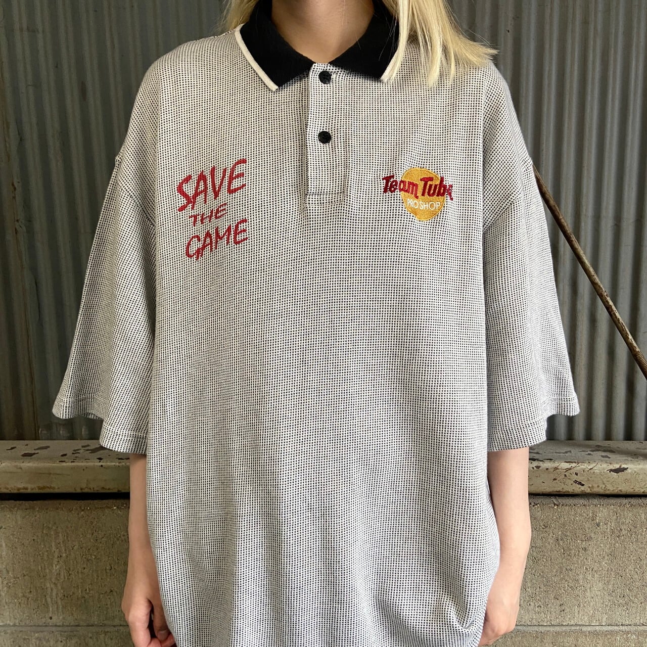 ■ビッグサイズ 90年代 企業ロゴ刺繍 team tuba pro shop ニット ポロシャツ メンズ2XL 古着 90s ビンテージ ヴィンテージ ワークシャツ ホワイト×ブラック 大きいサイズ 【ポロシャツ・ラガーシャツ】