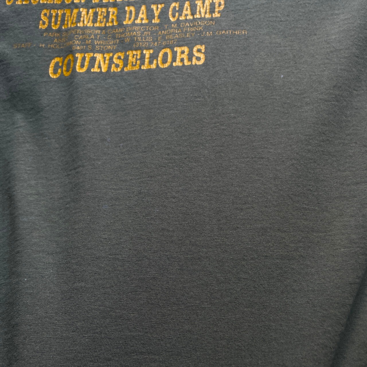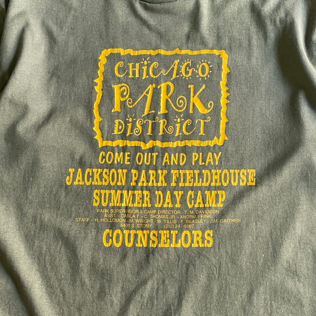 90年代 chicago park district 両面プリント ロゴTシャツ メンズXL 古着 90s ヴィンテージ ビンテージ カーキグリーン 緑 バックプリント シングルステッチ【Tシャツ】