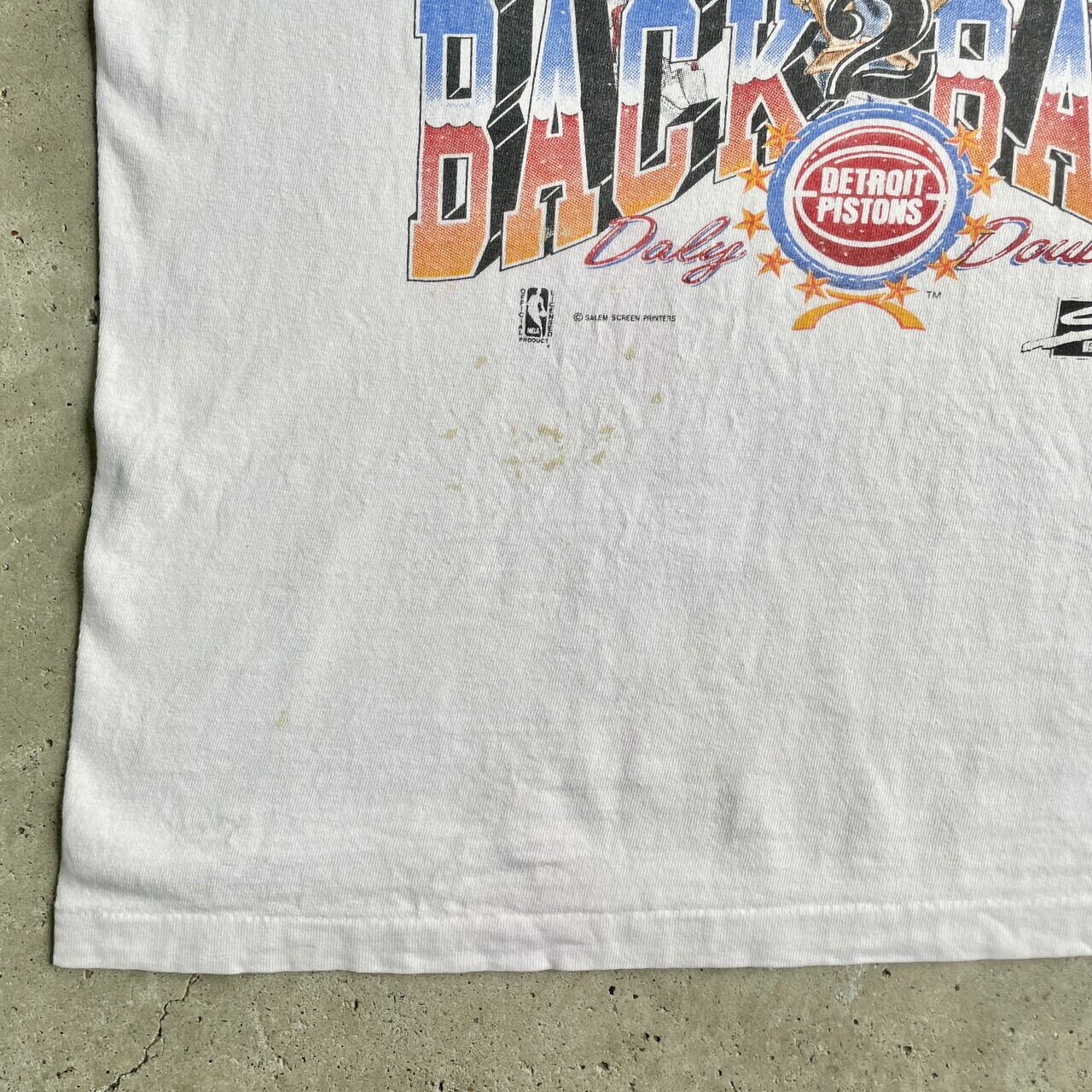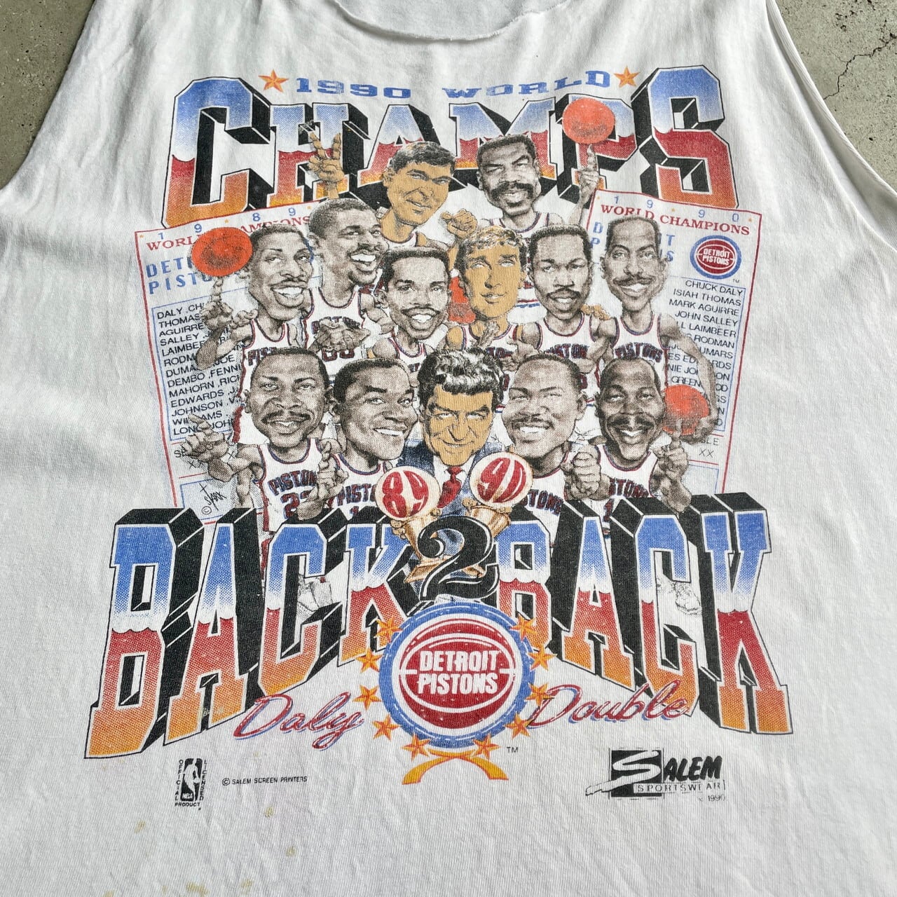 ■90年代 NBA DETROIT PISTONS 1990 WORLD CHAMPIONS チームロゴ プリント カットオフ ノースリーブTシャツ メンズL 古着 デトロイト・ピストンズ バスケ BACK 2 BACK 90s ビンテージ ヴィンテージ シングルステッチ ホワイト 白 【Tシャツ】