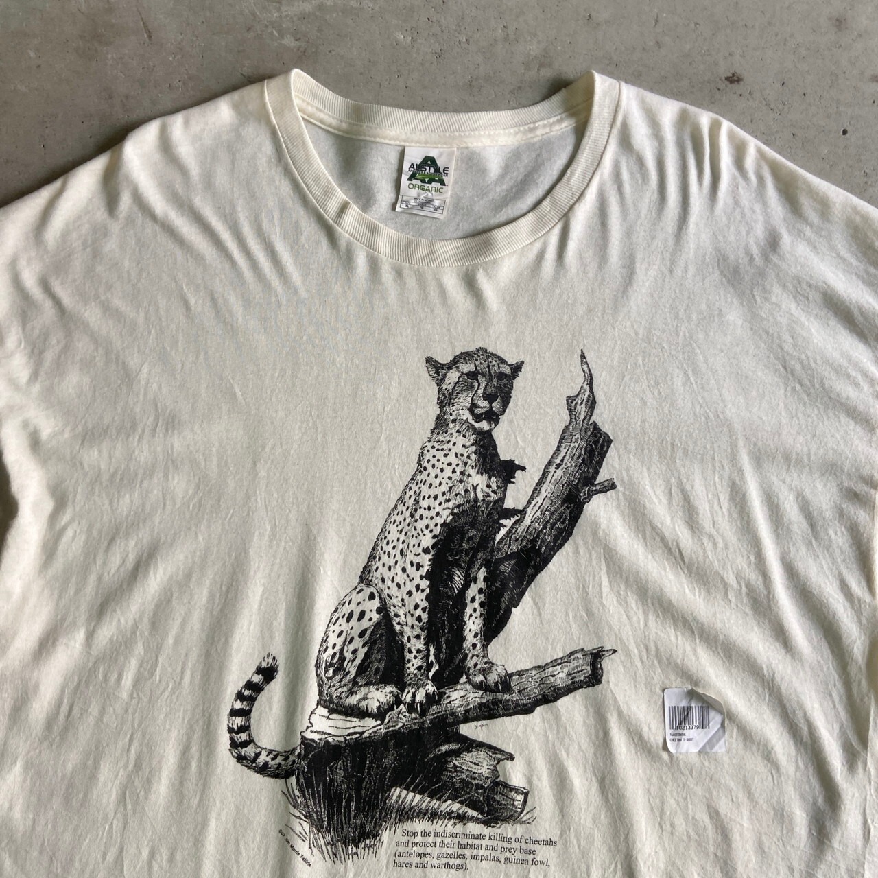 ■DEAD STOCK 00年代 JIM MORRIS チーター アニマル アート プリントTシャツ メンズXL 古着 動物 00s ビンテージ ヴィンテージ デッドストック ナチュラルカラー オフホワイト 生成り【Tシャツ】