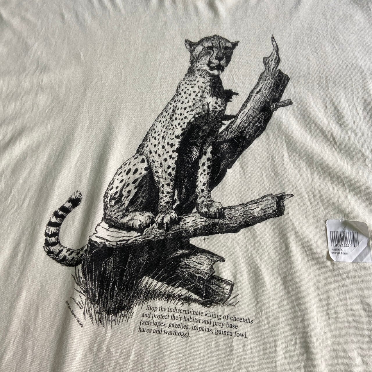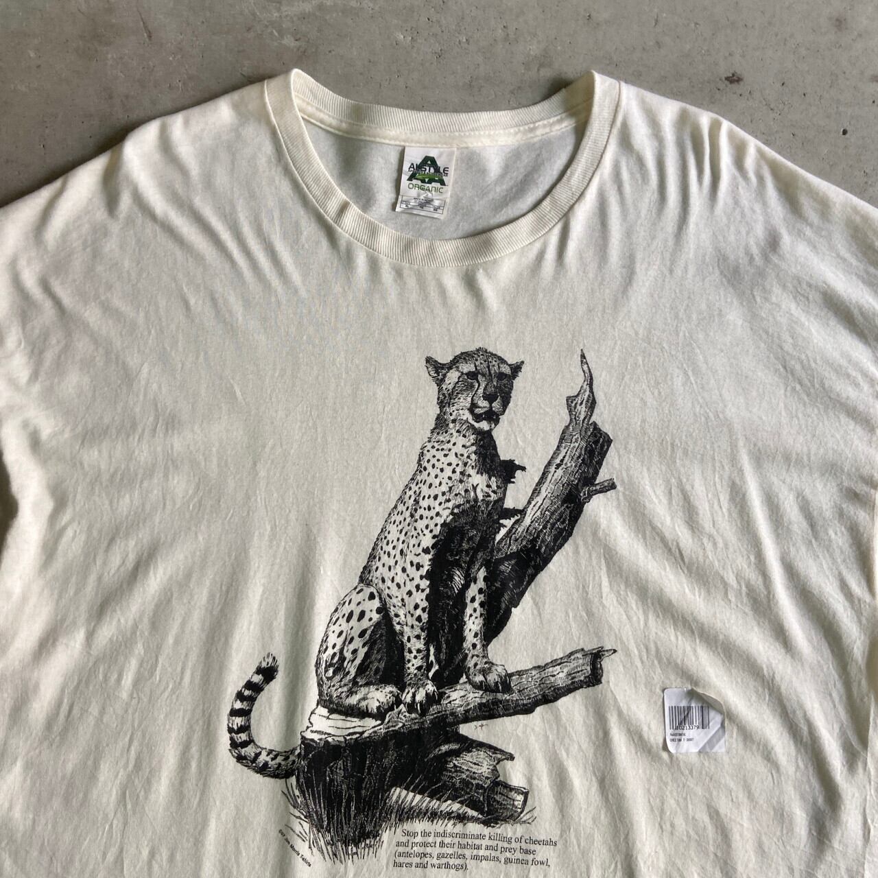 DEAD STOCK 00年代 JIM MORRIS チーター アニマル アート プリントTシャツ メンズXL 古着 動物 00s ビンテージ ヴィンテージ デッドストック ナチュラルカラー オフホワイト 生成り【Tシャツ】【SA2501-50】