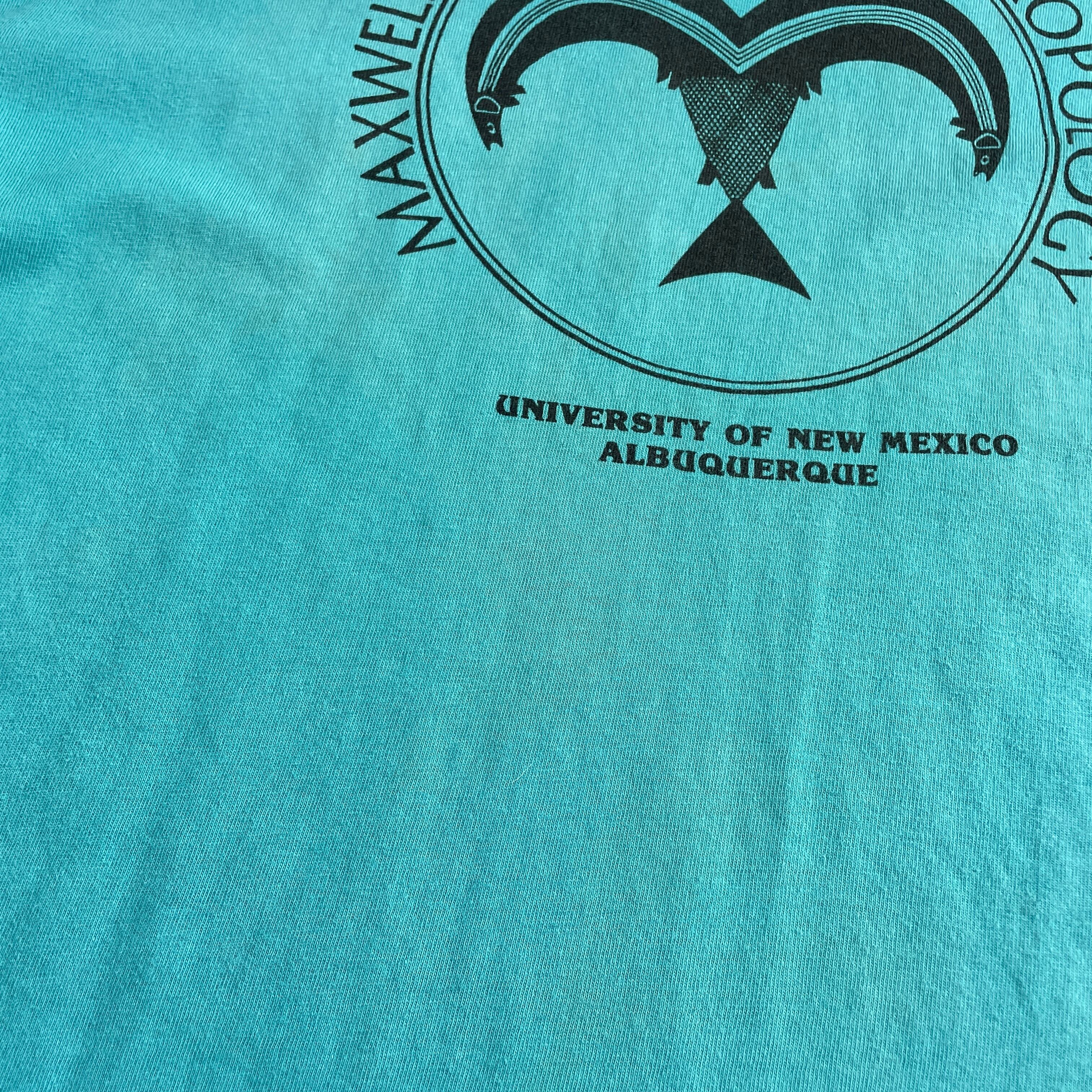 90年代 MAXWELL MUSEUM OF ANTHROPOLOGY 博物館 アート プリントTシャツ メンズXL相当 古着 動物 90s ビンテージ ヴィンテージ シングルステッチ ライトブルー 水色【Tシャツ】【SA2501-50】