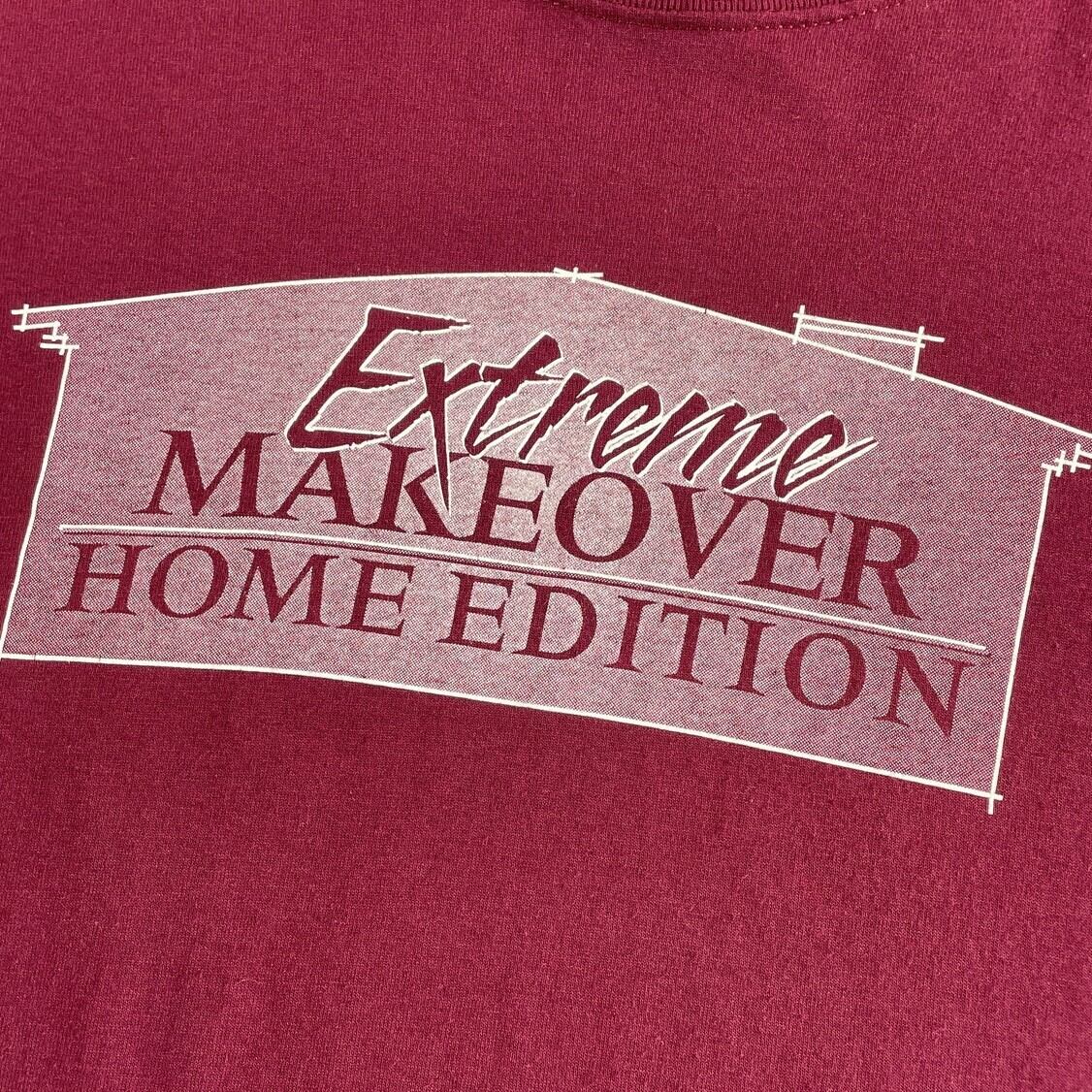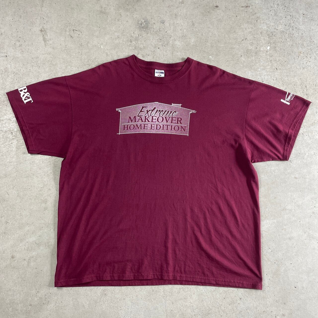 ■ビッグサイズ 00年代 EXTERME MAKEOVER HOME EDITION リアリティテレビシリーズ プリントTシャツ メンズ2XL 古着 00s ビンテージ ヴィンテージ 企業ロゴ 袖プリント ワインレッド ボルドー えんじ 大きいサイズ【Tシャツ】