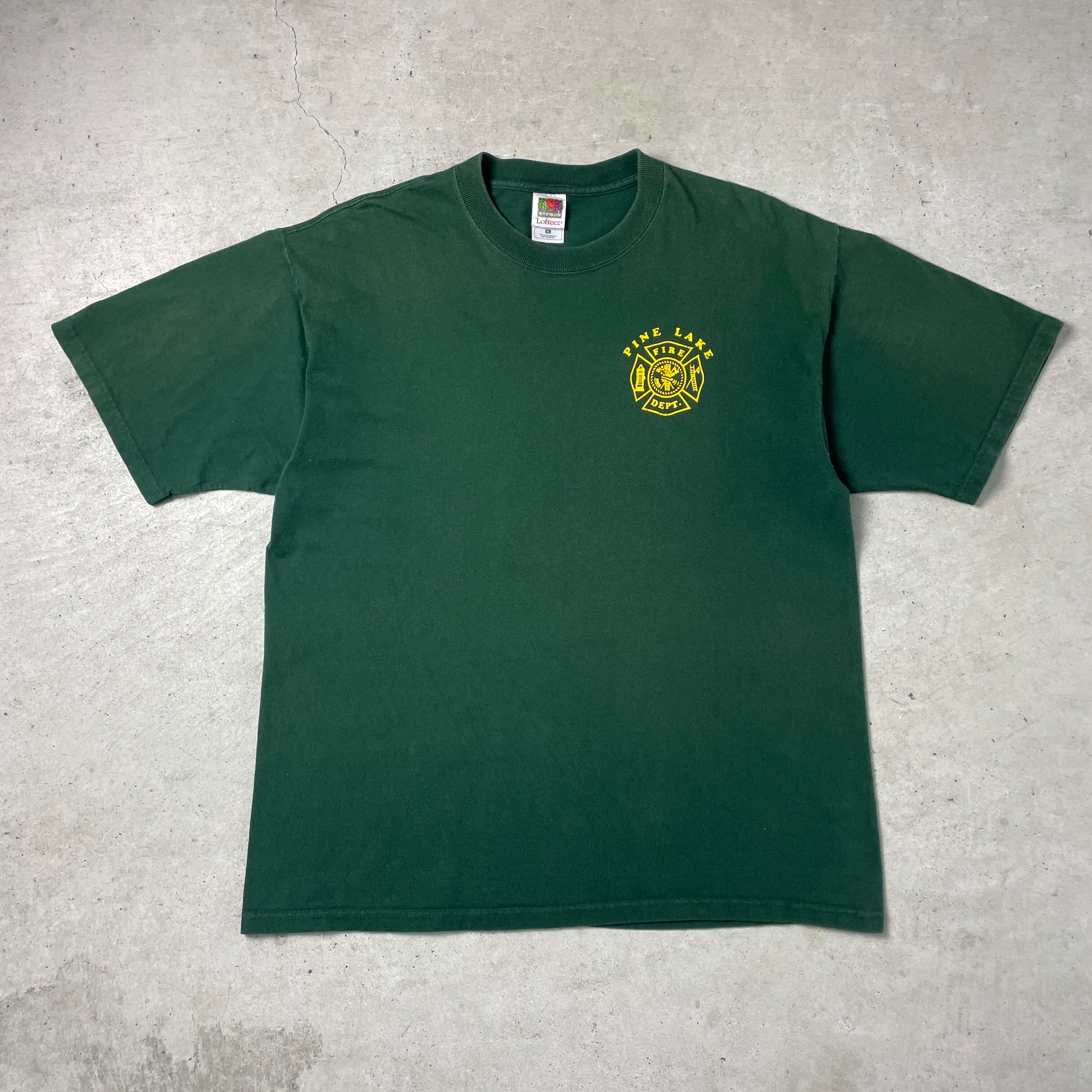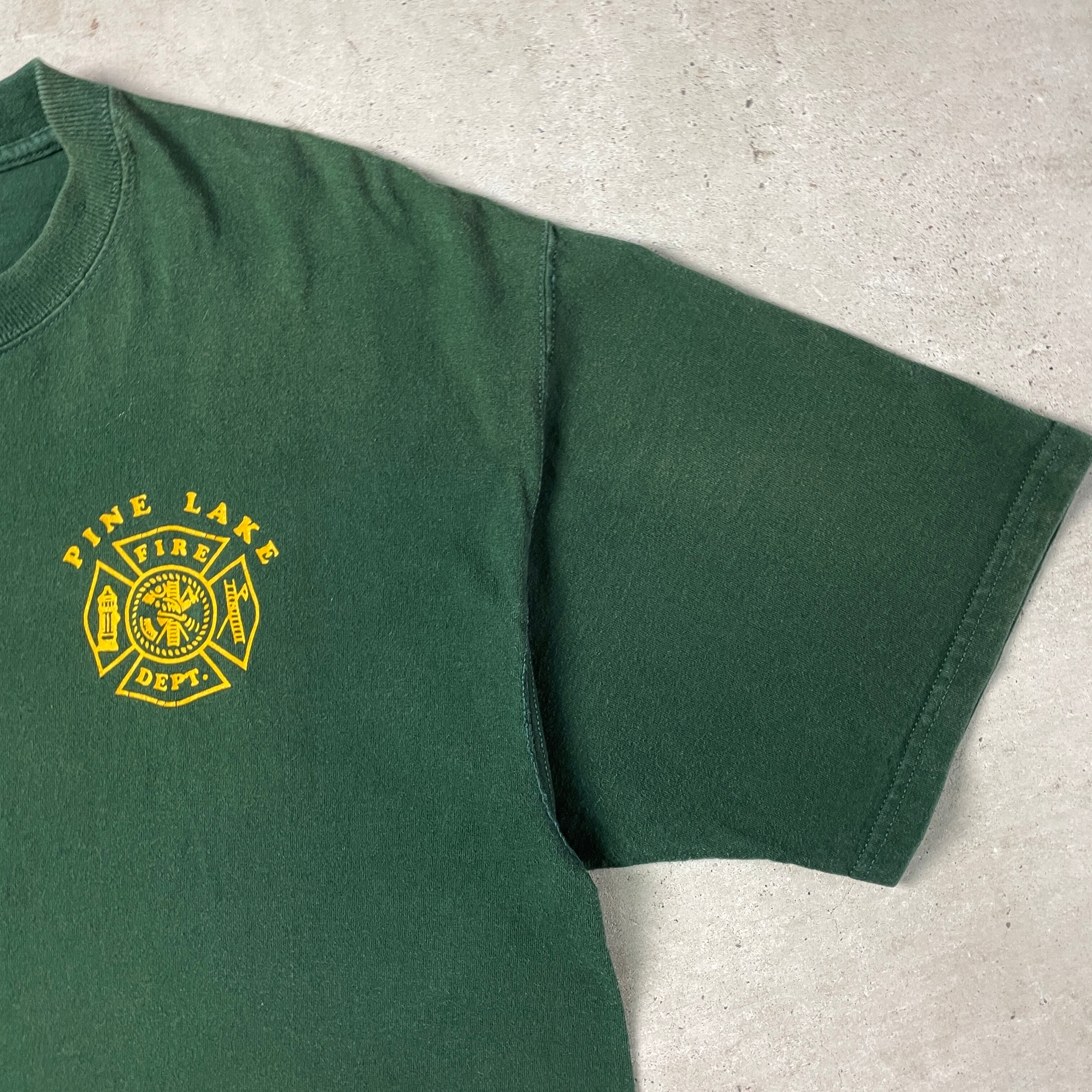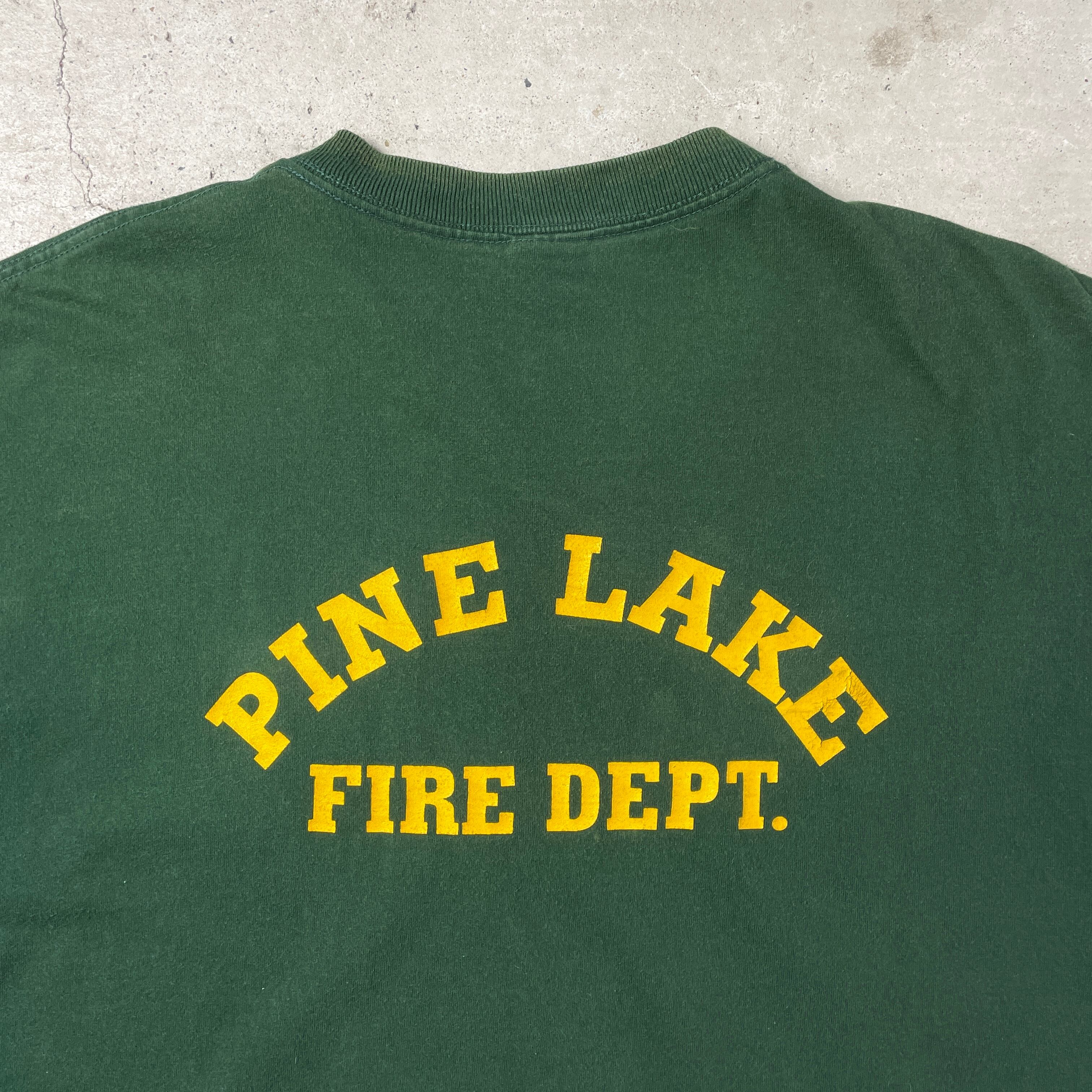 ■00年代 PINE LAKE FIRE DEPT. 消防署 バックプリントTシャツ メンズXL 古着 00s ビンテージ ヴィンテージ 両面プリント バックプリント グリーン 緑色【Tシャツ】