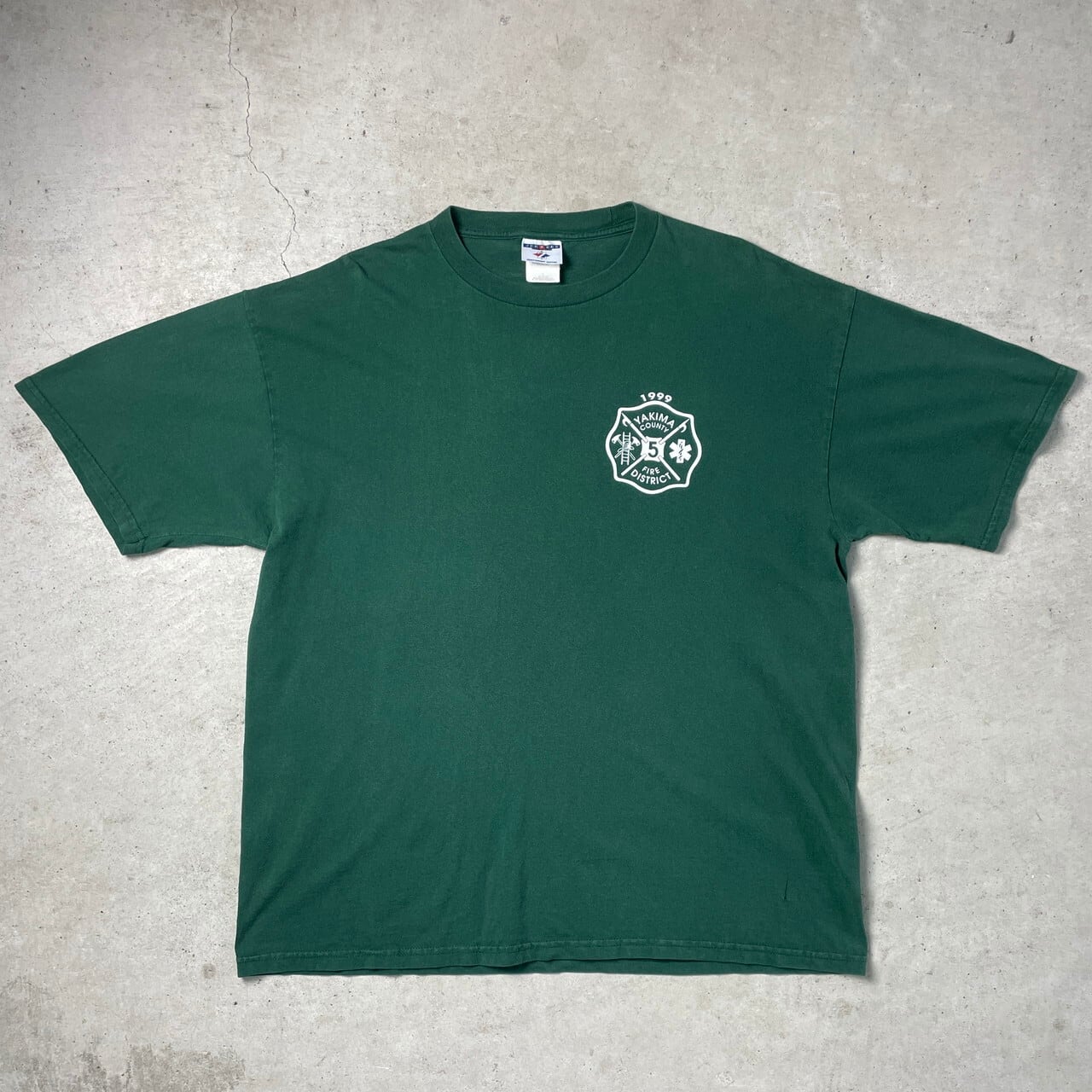 ■90年代 YAKIMA COUNTY FIRE DISTRICT 消防 バックプリントTシャツ メンズXL 古着 90s ビンテージ ヴィンテージ 胸ロゴ グリーン 緑色【Tシャツ】
