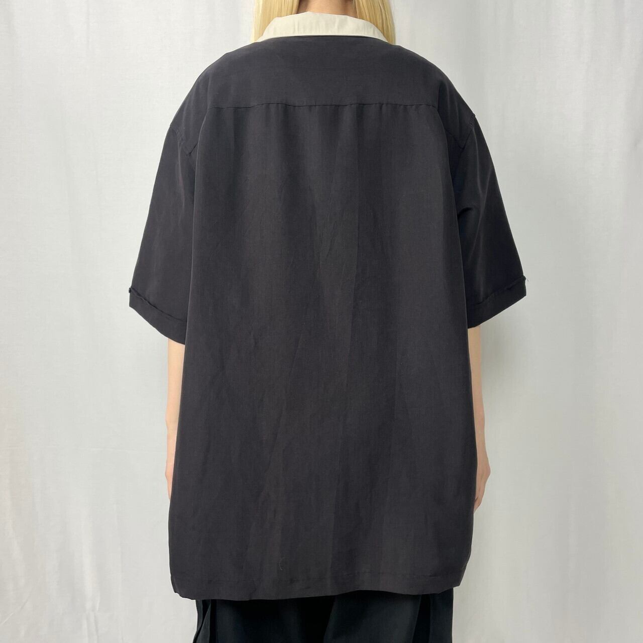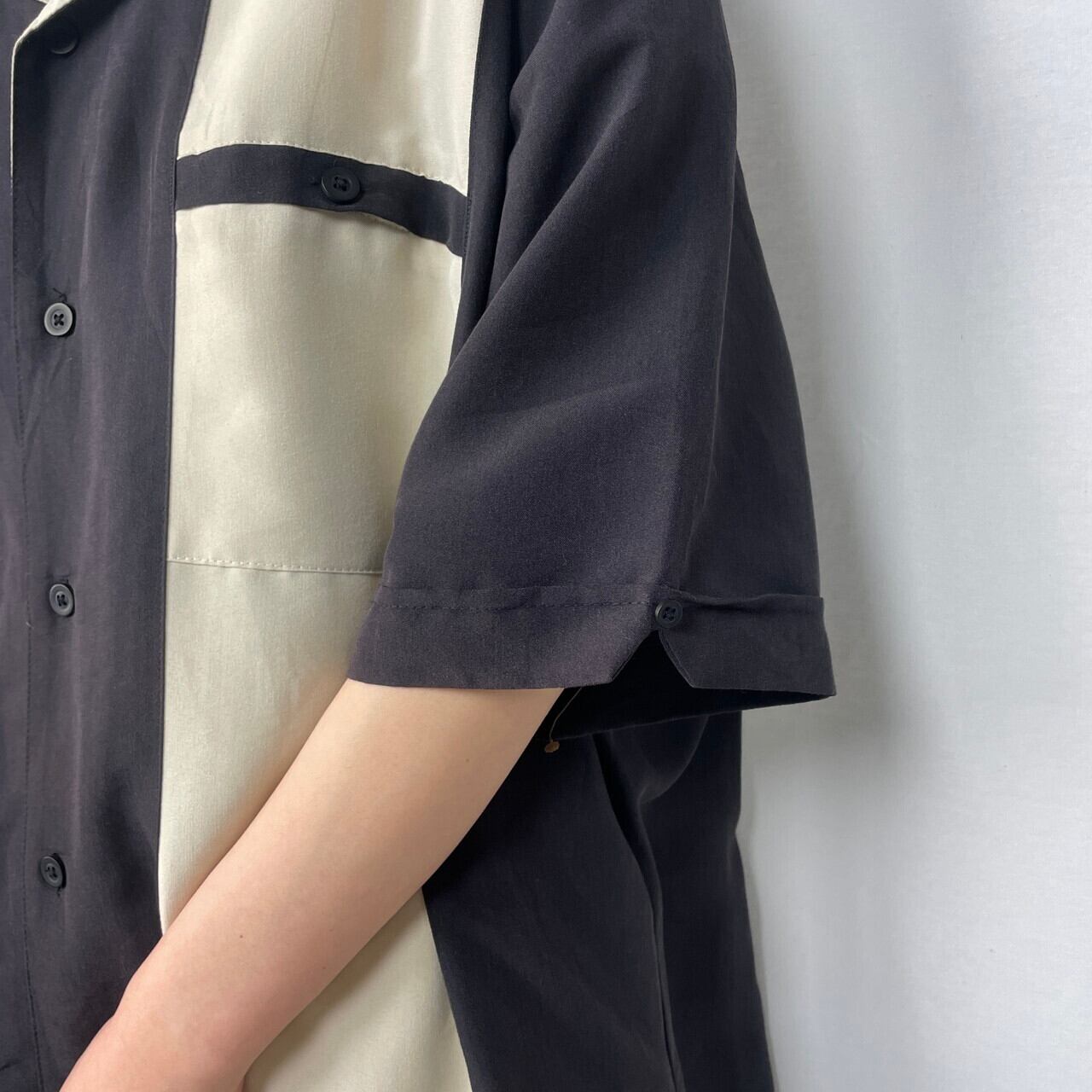 Centro 2トーン 切替 開襟シャツ レーヨン オープンカラーシャツ メンズXL 古着 ブラック×ベージュ【半袖シャツ】【PS0707】【4S-50】