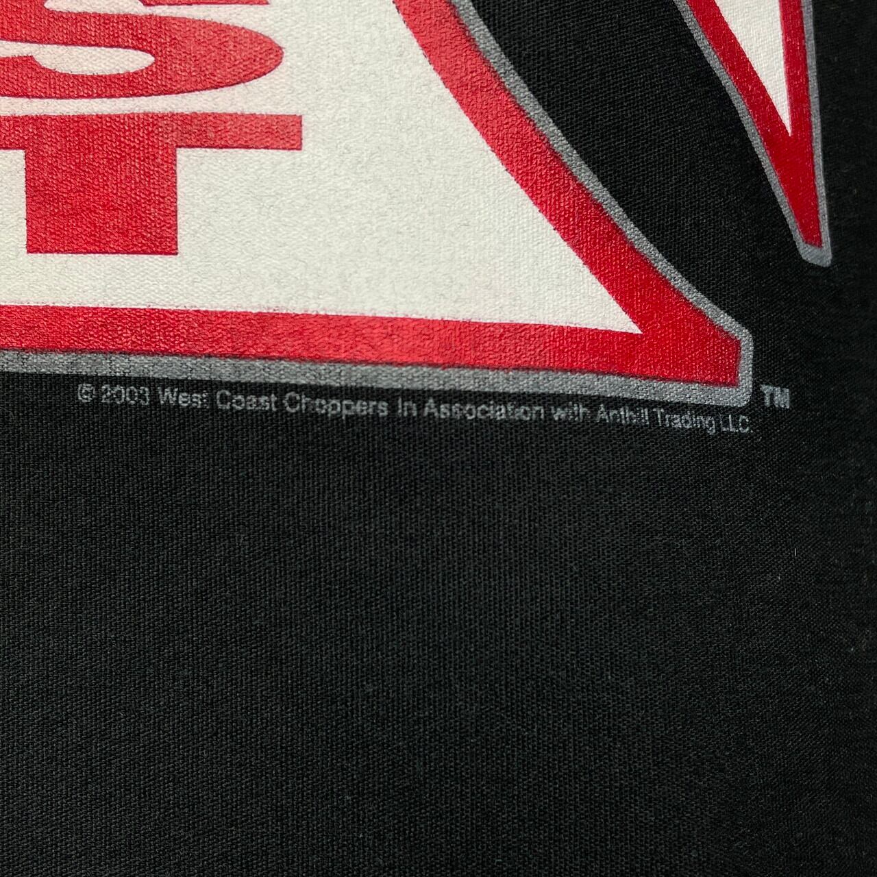 WEST COAST CHOPPERS モーターサイクル 企業ロゴ 刺繍 ワークシャツ メンズ2XL 古着 バイク アイアンクロス ブラック 黒【半袖シャツ】
