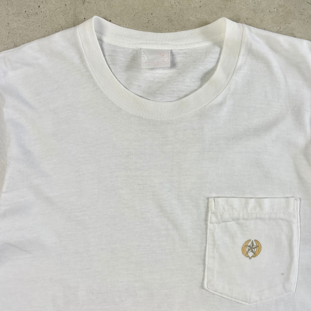 ■80年代 BANANA REPUBLIC バナナリパブリック TRAVEL & SAFARI アニマル バックプリント ポケットTシャツ メンズM相当 古着 80s ビンテージ ヴィンテージ シングルステッチ ポケT 動物 アート バナリパ ホワイト白【Tシャツ】