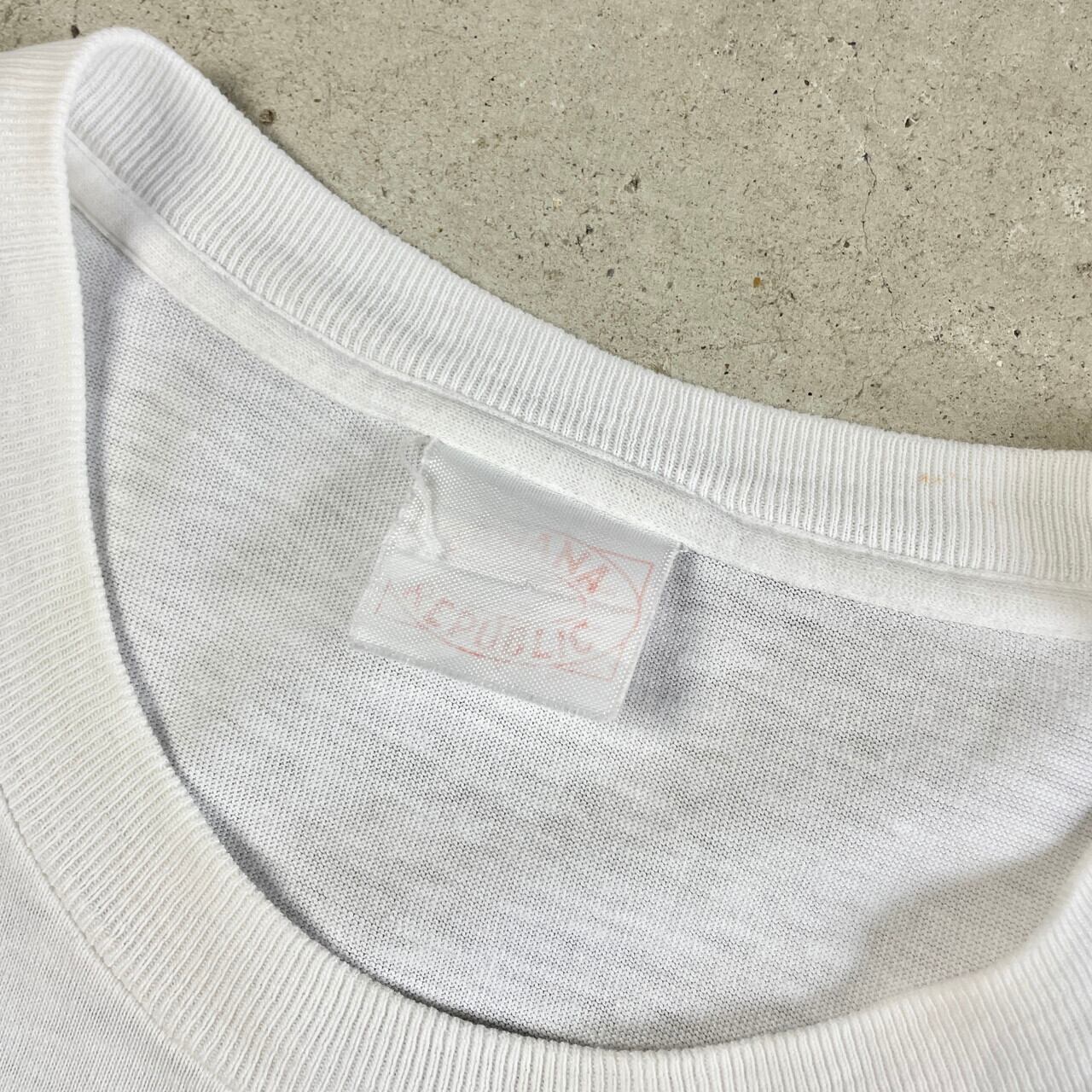 80年代 BANANA REPUBLIC バナナリパブリック TRAVEL & SAFARI アニマル バックプリント ポケットTシャツ メンズM相当 古着 80s ビンテージ ヴィンテージ シングルステッチ ポケT 動物 アート バナリパ ホワイト白【Tシャツ】【4S-30】【PD2420】
