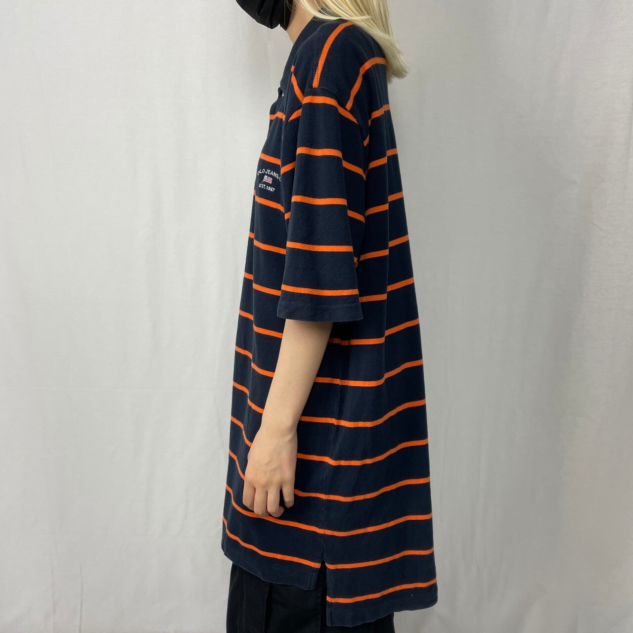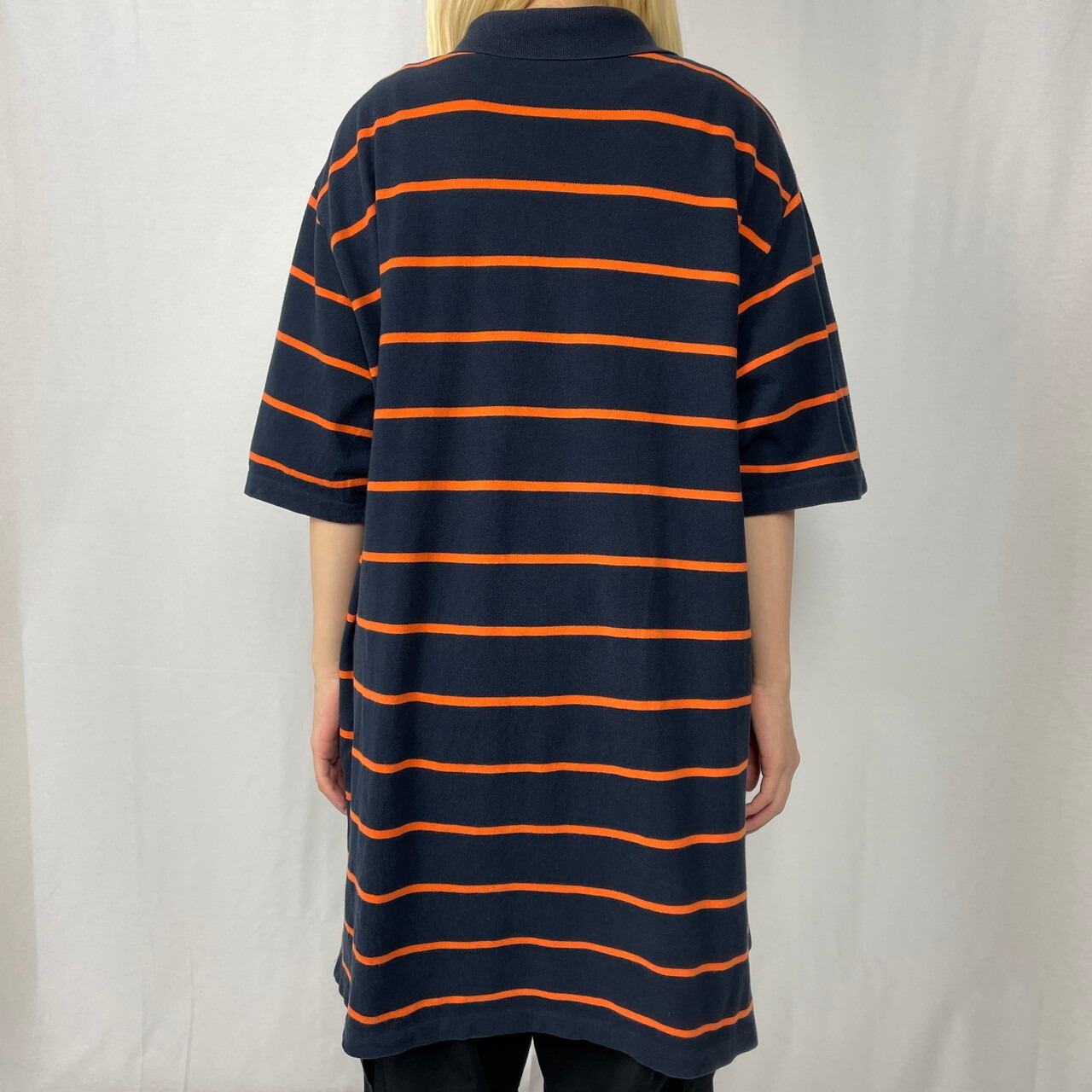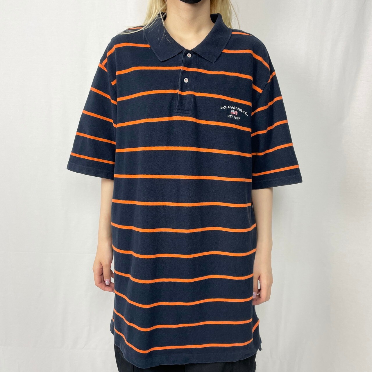 Polo Jeans Co. ラルフローレン 鹿の子 ボーダー ポロシャツ メンズXL 古着 星条旗 ワンポイントロゴ刺繍 ネイビー×オレンジ 【ポロシャツ】【SA2501-50】