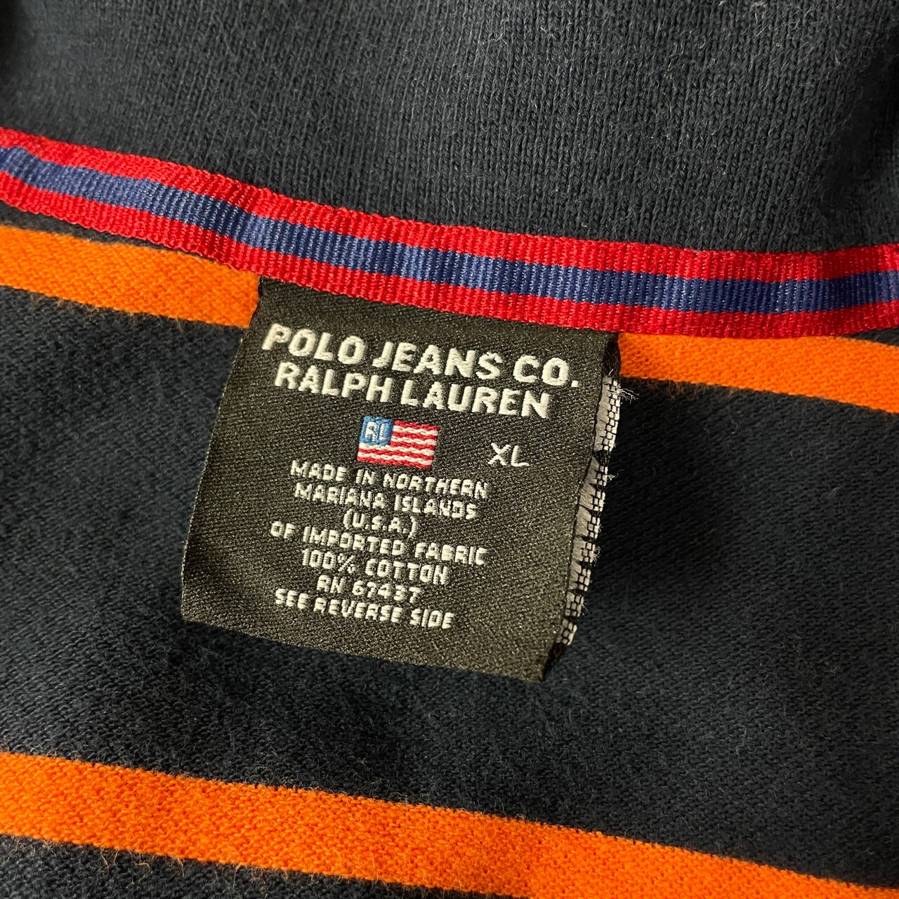 ■Polo Jeans Co. ラルフローレン 鹿の子 ボーダー ポロシャツ メンズXL 古着 星条旗 ワンポイントロゴ刺繍 ネイビー×オレンジ 【ポロシャツ】