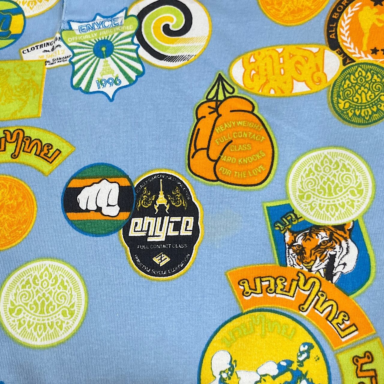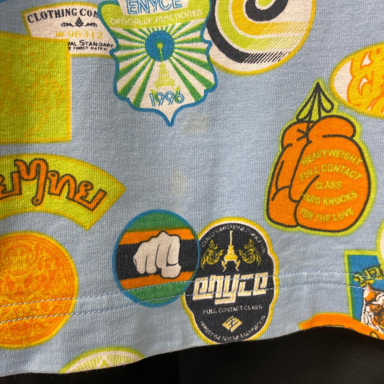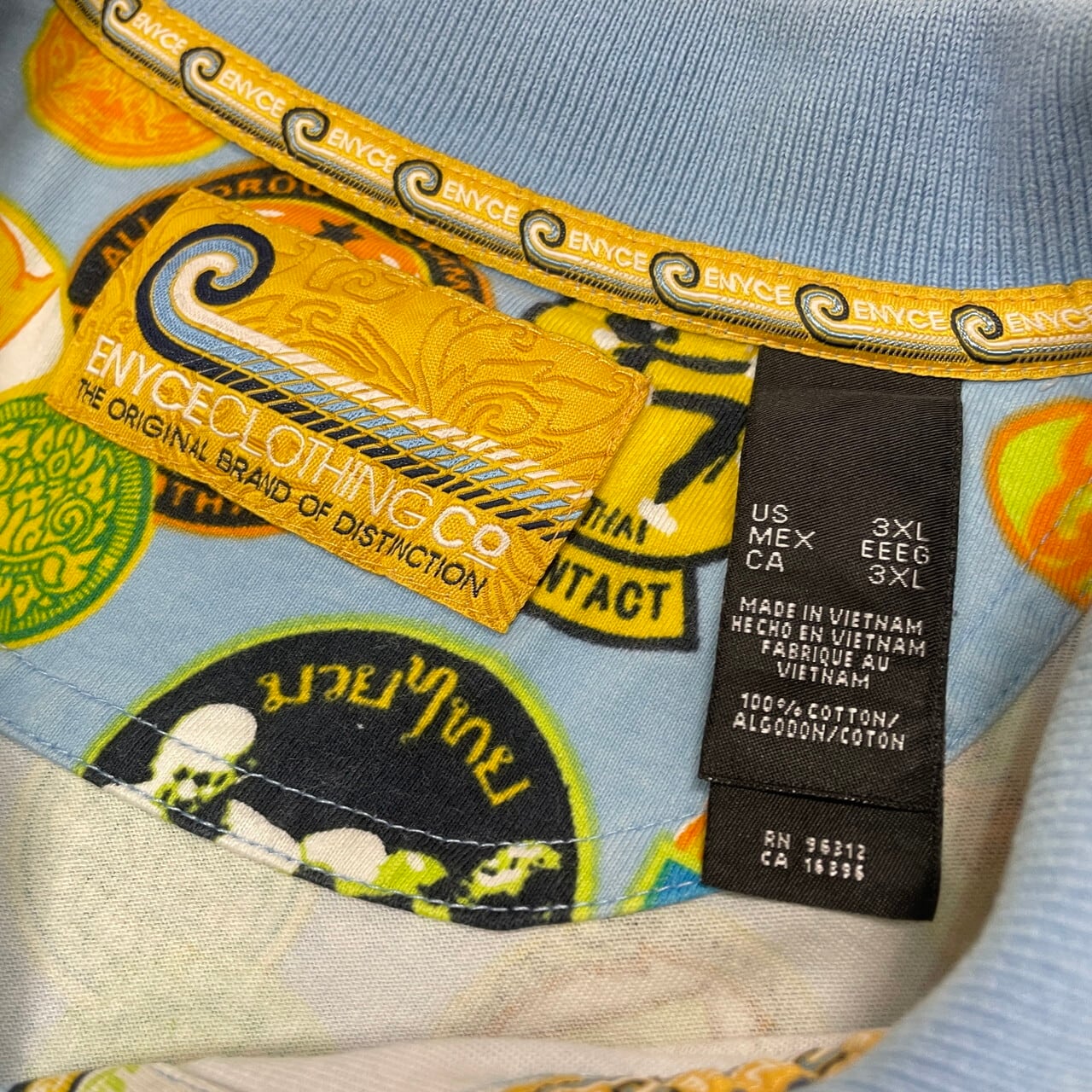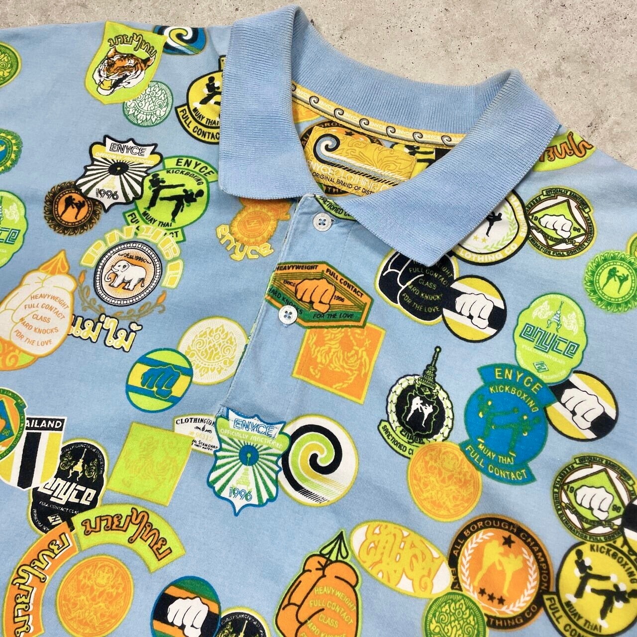 ■ENYCE 総柄 刺繍 ポロシャツ メンズ3XL 古着 ストリート HIP-HOP Y2K ライトブルー 水色 ビッグサイズ 大きいサイズ【ポロシャツ】