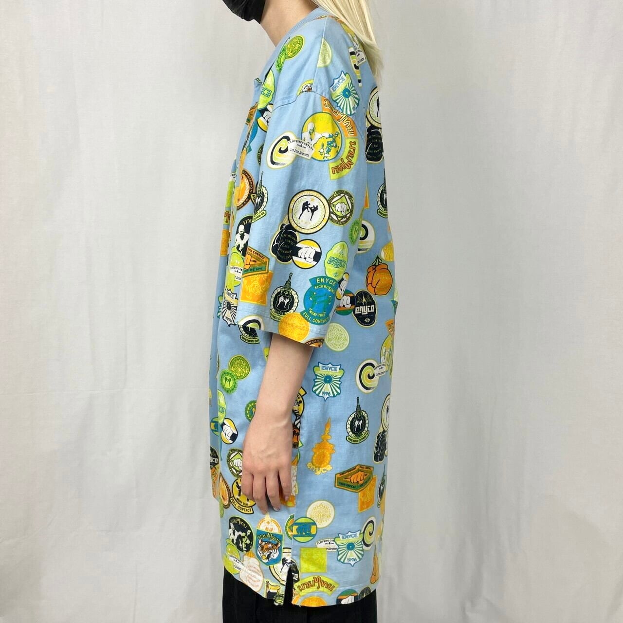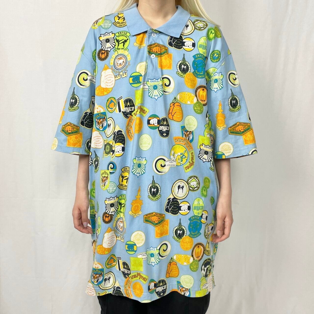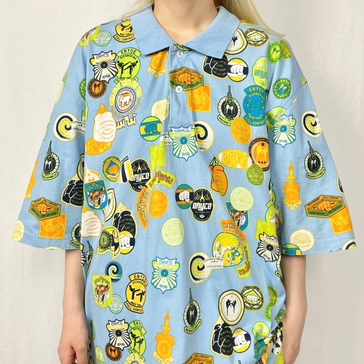 ENYCE 総柄 刺繍 ポロシャツ メンズ3XL 古着 ストリート HIP-HOP Y2K ライトブルー 水色 ビッグサイズ 大きいサイズ【ポロシャツ】【SA2501-50】