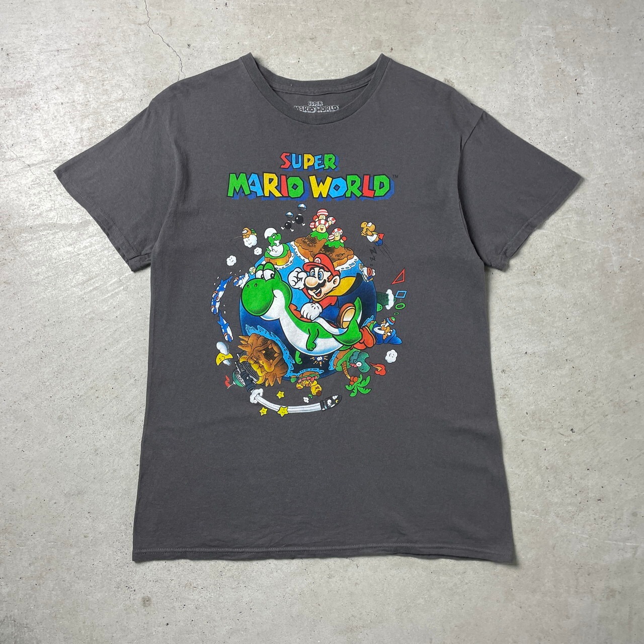 ■SUPER MARIO WORLD スーパーマリオ NINTENDO 任天堂 ゲーム キャラクタープリントTシャツ メンズM 古着 グレー 灰色【Tシャツ】