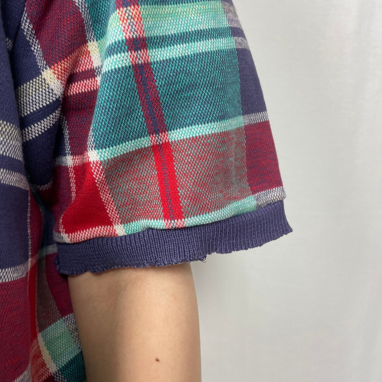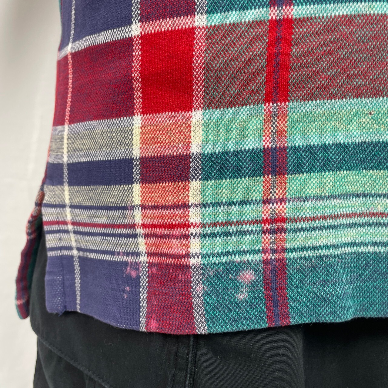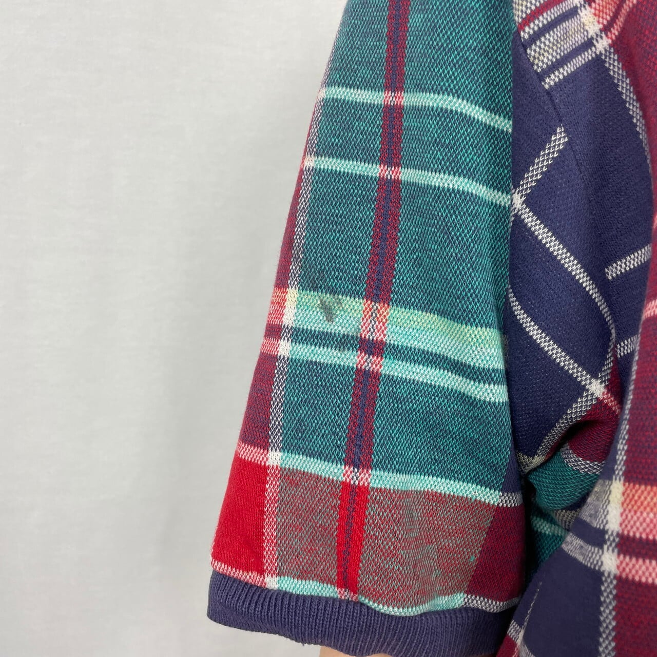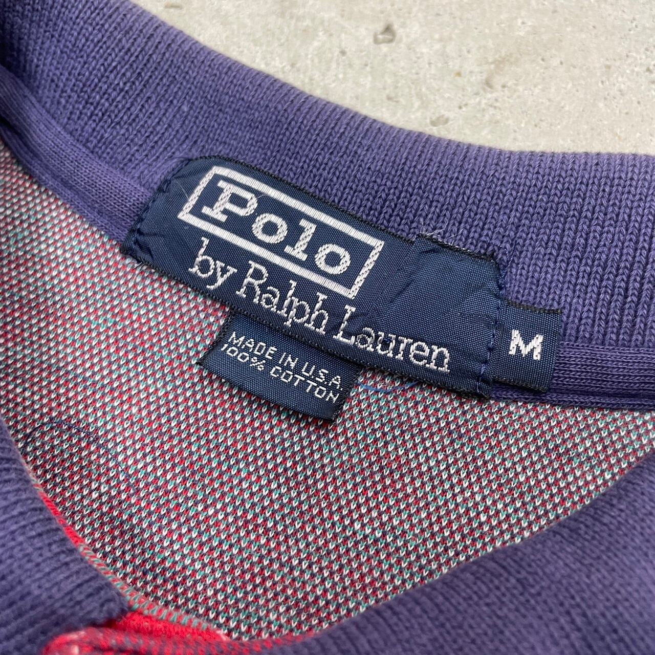 90年代 USA製 襤褸 Polo by Ralph Lauren オールドラルフローレン チェック柄 ポロシャツ メンズM 古着 90s ヴィンテージ ビンテージ ワンポイントロゴ刺繍 ボロ レッド ネイビー グリーン 赤色 紺色 緑色【ポロシャツ】【SA2501-50】