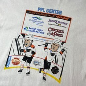 ■PPL CENTER CCM アメリカン ホッケー 企業ロゴ 両面プリントTシャツ メンズXL相当 古着 スポーツアリーナ アドバタイジング ホワイト 白 バックプリント【Tシャツ】【PS2307T】