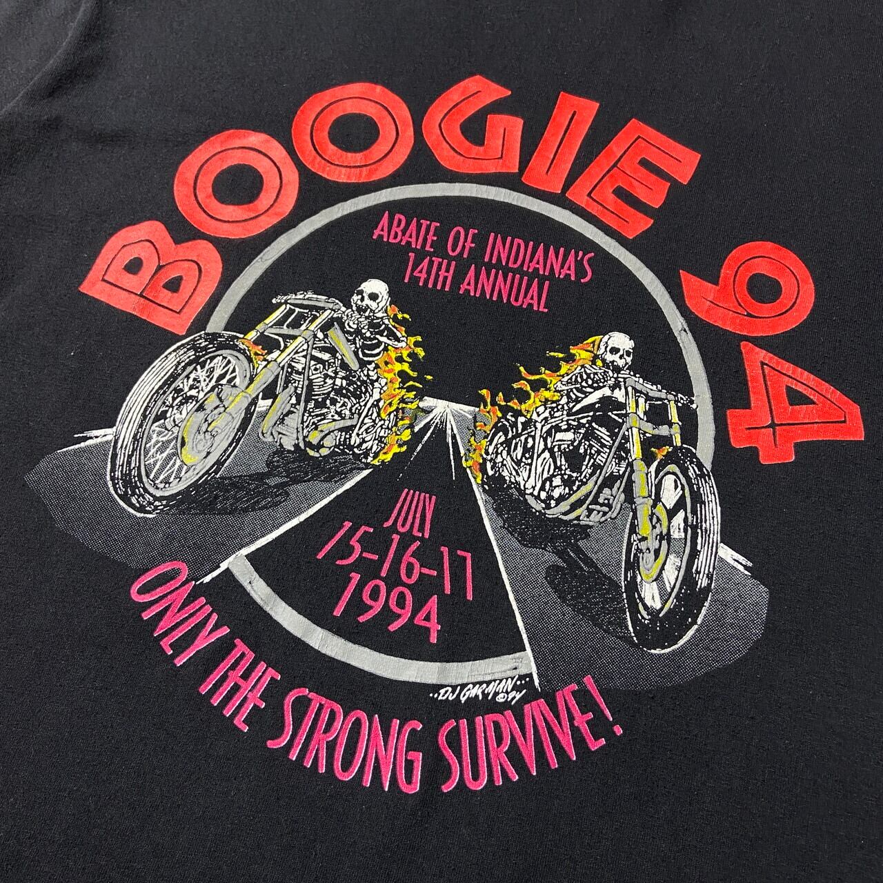 ■USA製 90年代 BOOGIE 94 MIDWEST'S BEST BIKER FEST 両面プリント Tシャツ メンズM 古着 90s 1994 スカル ドクロ バイカー モーターサイクル ビンテージ ヴィンテージ バイクTシャツ フェス ブラック 黒色 シングルステッチ【Tシャツ】