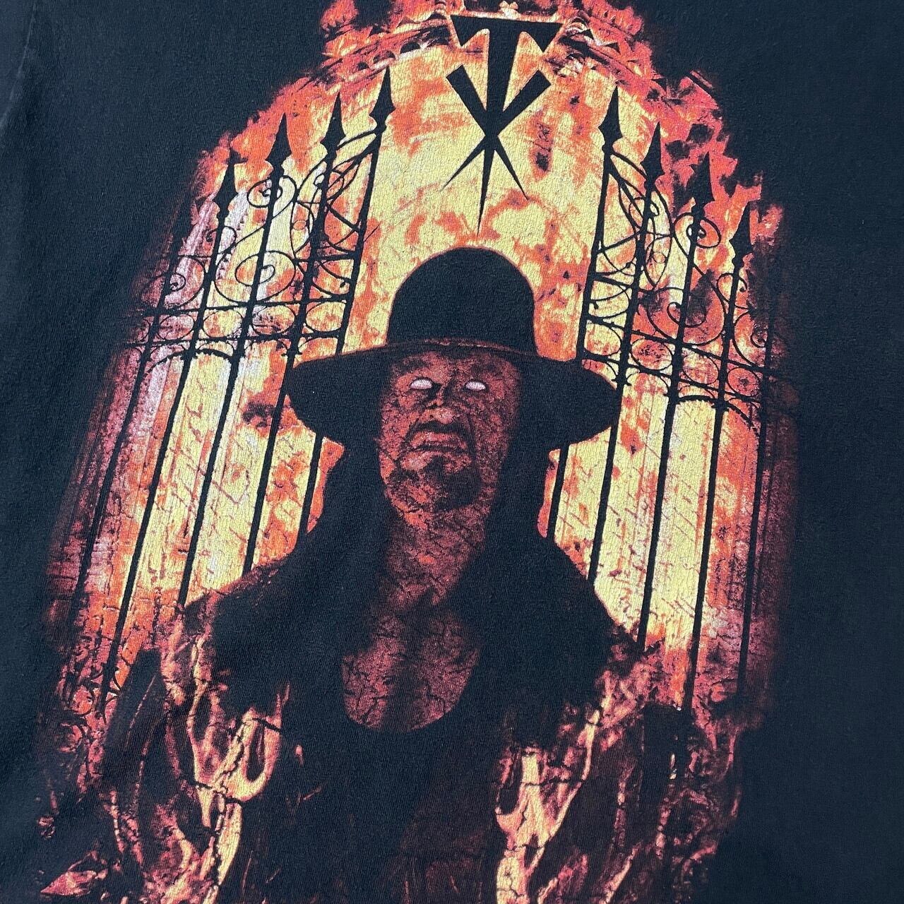 ■00年代 WWE THE UNDERTAKER HELL'S GATE 両面プリント Tシャツ メンズM 古着 00s ヴィンテージ ビンテージ 2007 バックプリント プロレスラー フェードブラック 墨黒【Tシャツ】