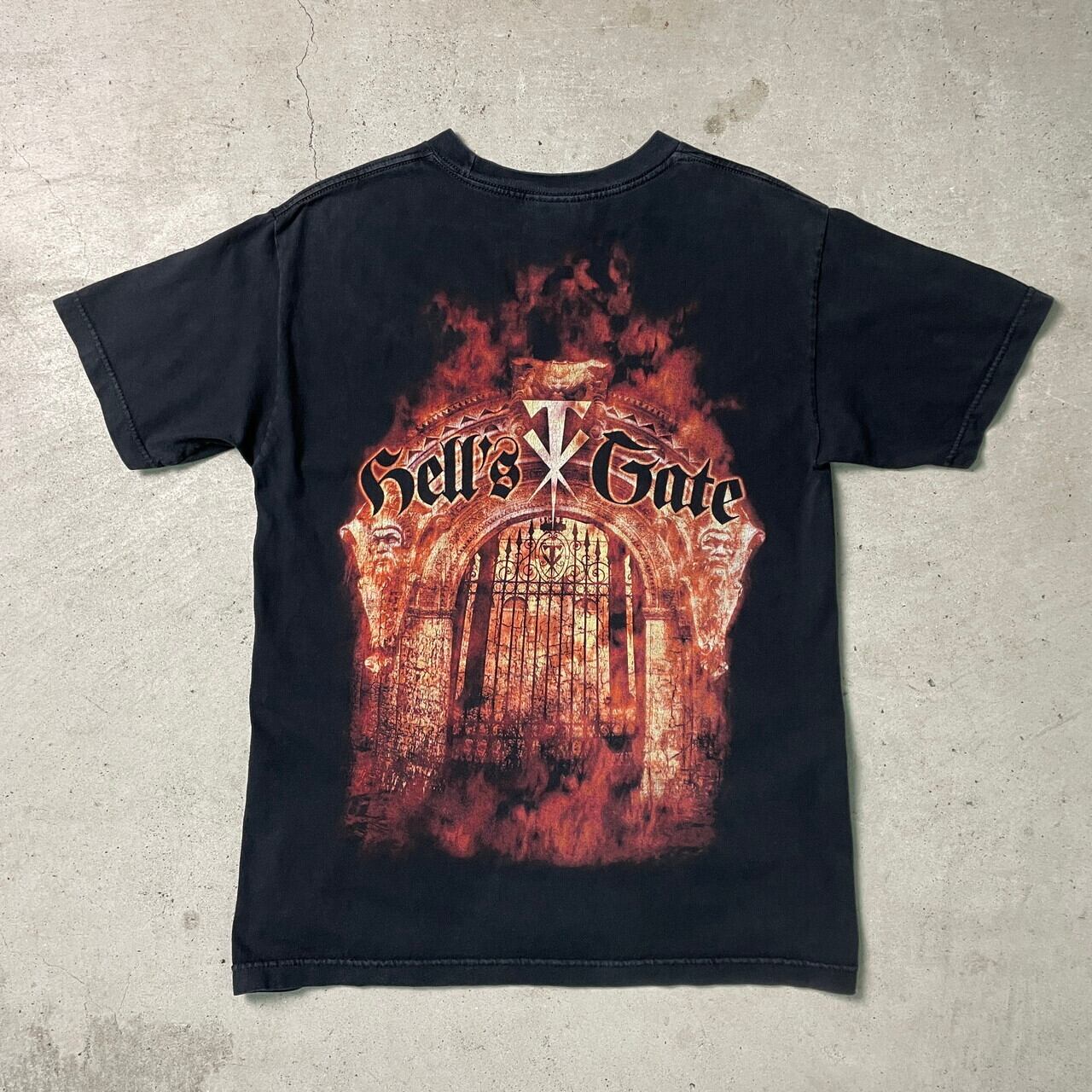 00年代 WWE THE UNDERTAKER HELL'S GATE 両面プリント Tシャツ メンズM 古着 00s ヴィンテージ ビンテージ 2007 バックプリント プロレスラー フェードブラック 墨黒【Tシャツ】【4S-30】