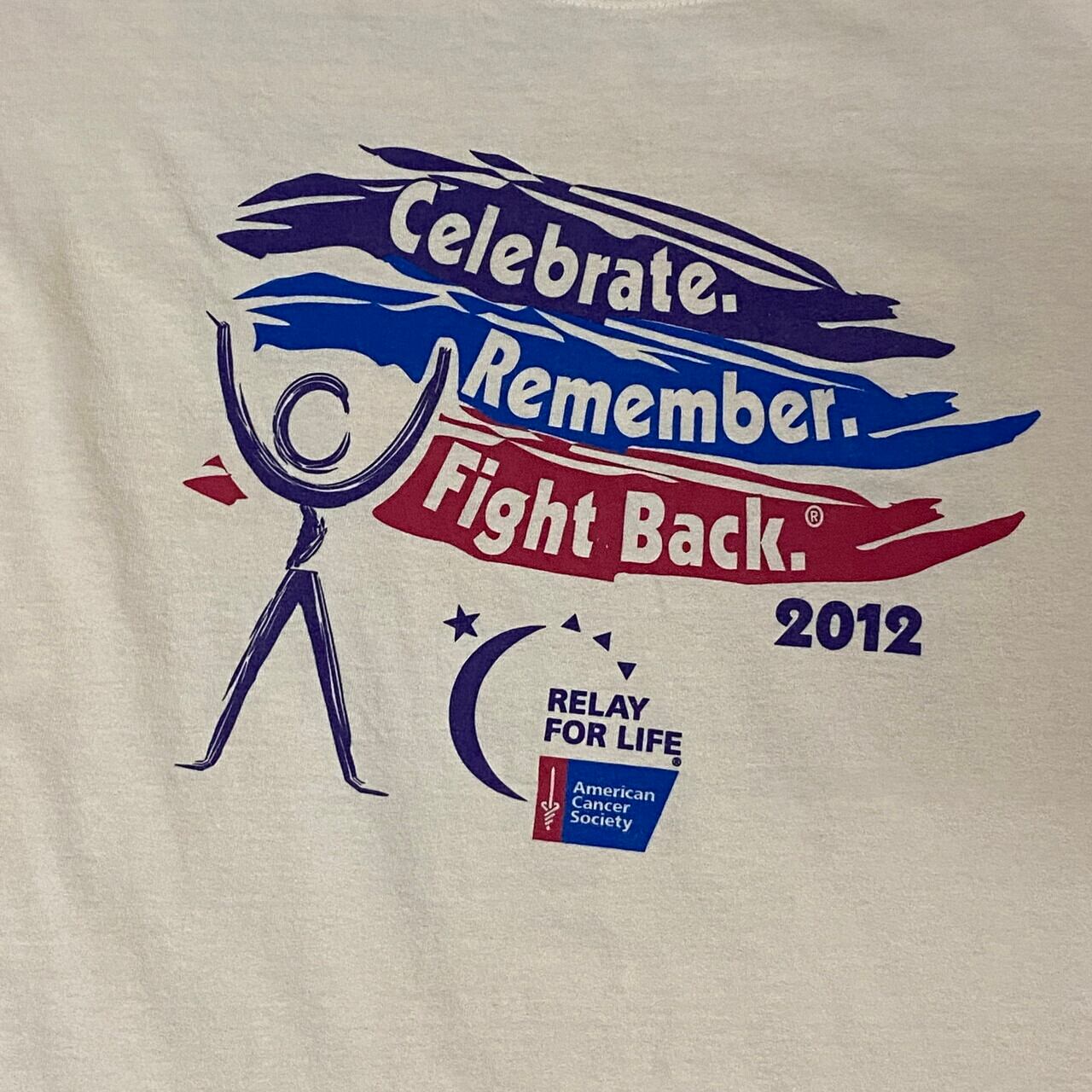 american cancer society アメリカがん協会 メッセージ プリントTシャツ メンズL 古着 両面プリント バックプリント 企業ロゴ アドバタイジング 【Tシャツ】【SA2501-50】