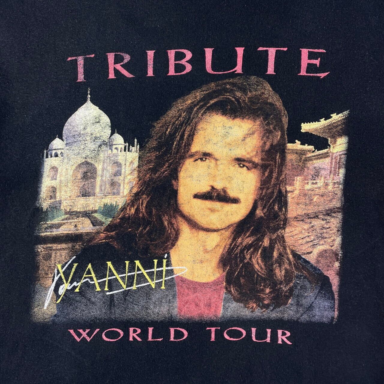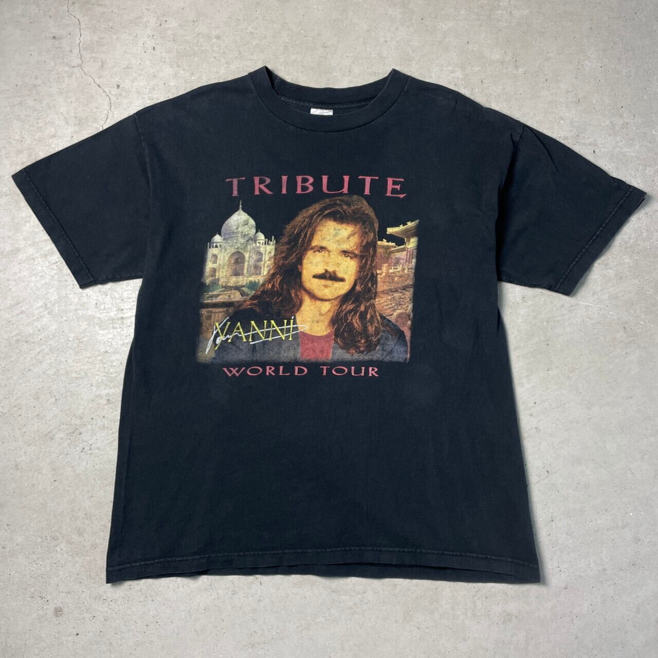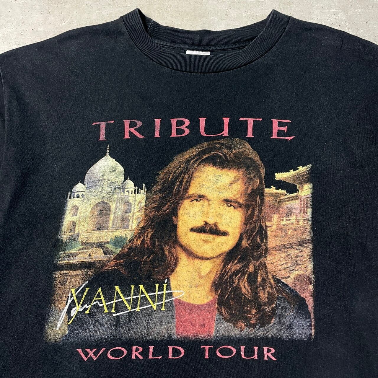 90年代 USA製 YANNI TRIBUTE WORLD TOUR アーティスト バンドTシャツ メンズXL 古着 90s ヴィンテージ ビンテージ ヤニー バンT フェードブラック 墨黒【Tシャツ】【SA2501-50】