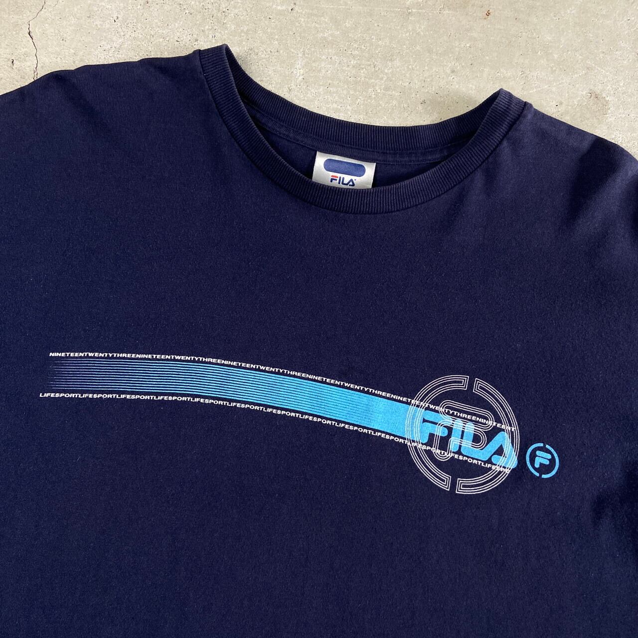 FILA フィラ ロゴ プリントTシャツ メンズL 古着 ネイビー 紺【Tシャツ】【SA2501-50】
